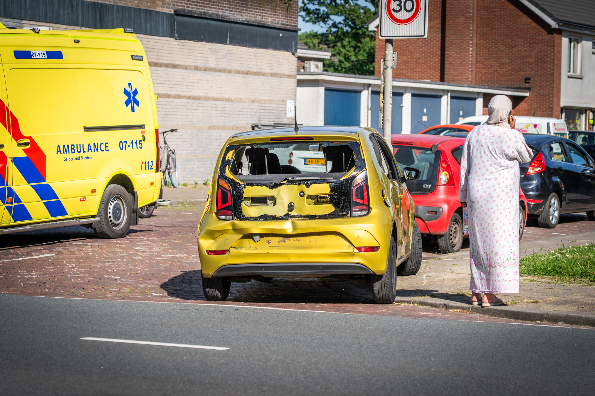 De personenauto liep daarbij flinke schade op aan de achterkant; de achterruit van het voertuig brak volledig. Ambulancepersoneel controleerde de inzittenden, maar niemand hoefde mee naar het ziekenhuis.