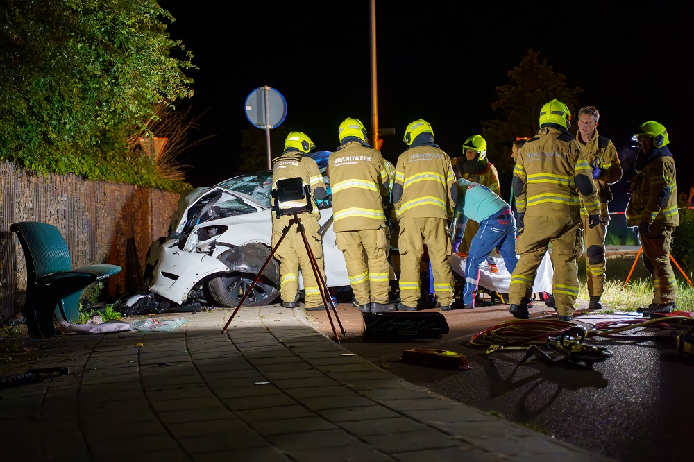 PUTTEN – Rond middernacht heeft een automobilist een ernstig eenzijdig ongeval veroorzaakt op de rotonde van de Voorthuizerstraat (N303) met de Veenhuizerveldweg in Putten. De auto reed vermoedelijk met hoge snelheid over de rotonde en kwam tot stilstand tegen een muur.