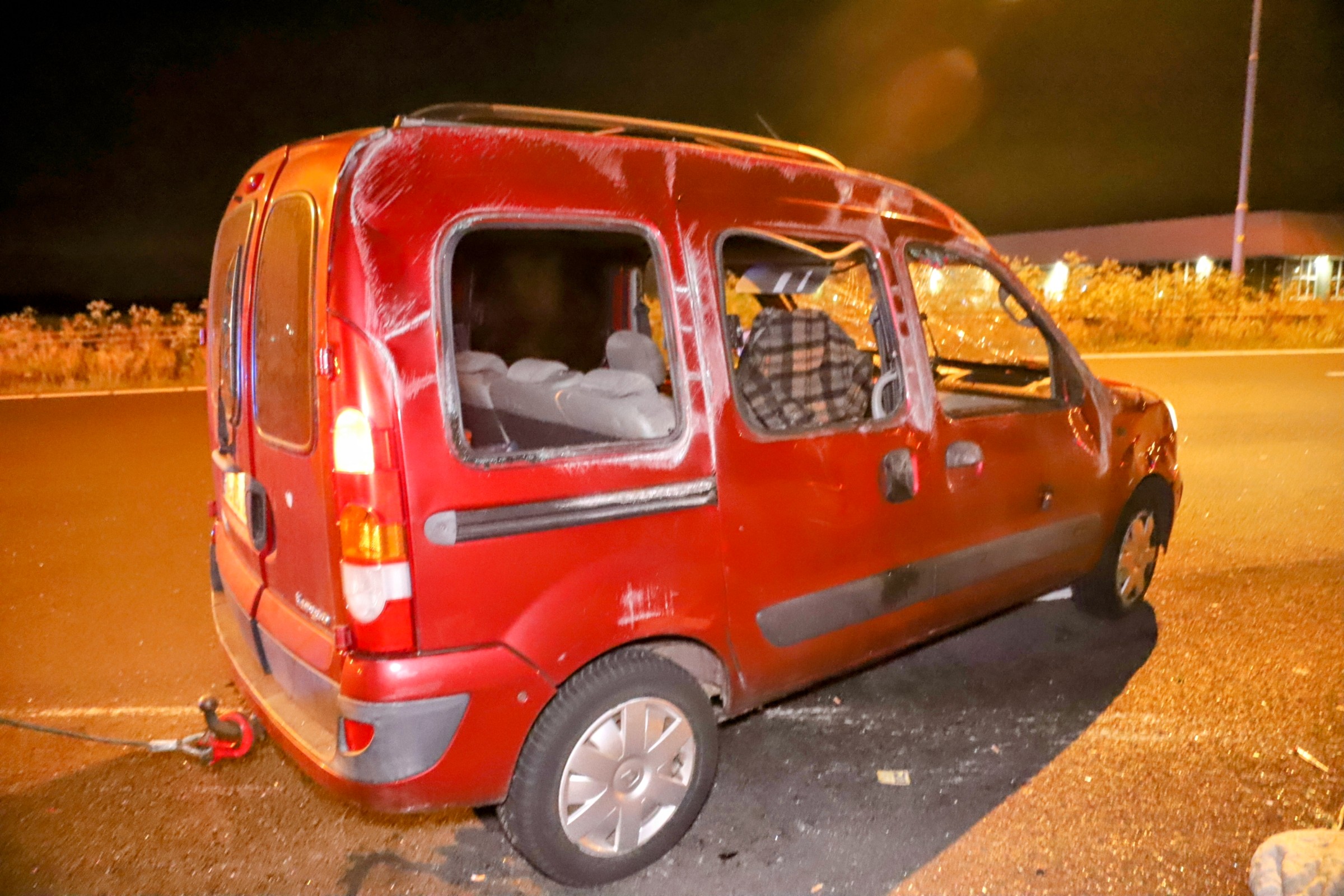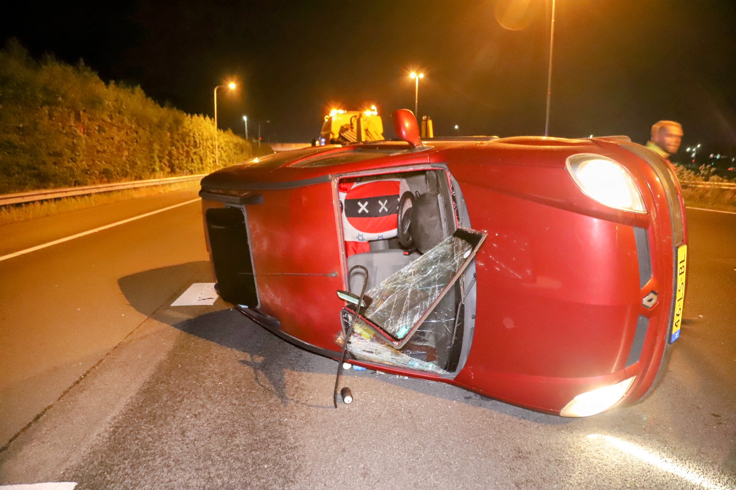 De bestuurder was vermoedelijk in slaap gevallen, raakte van de weg en kwam met zijn voertuig op de zijkant tot stilstand. Met hulp van passerende weggebruikers kon hij het voertuig veilig verlaten. Hij raakte niet gewond.
