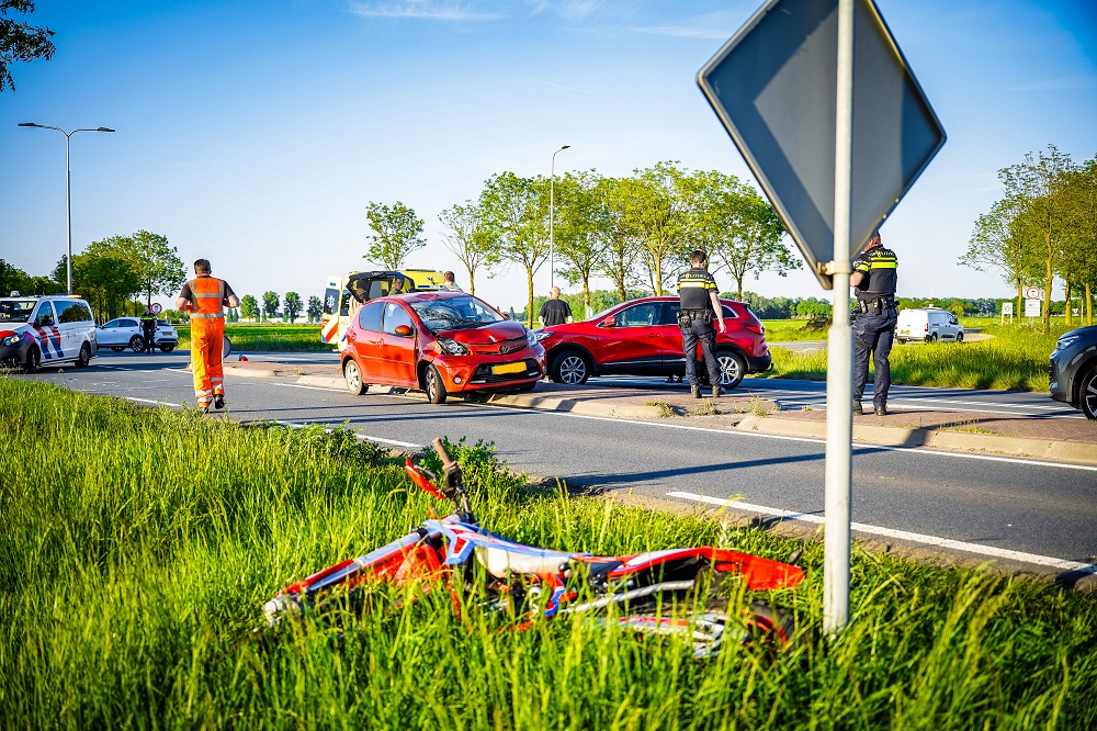 Jongeman ernstig gewond bij aanrijding tussen auto en crossmotor