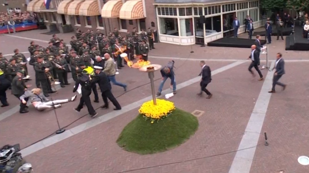 Het incident vond plaats tijdens de officiële ceremonie op het 5 Mei plein. Ondanks het protest maakte de minister zijn toespraak af, al pauzeerde hij kort terwijl demonstranten door politie en beveiliging werden afgevoerd. Oorlogsheld Marco Kroon, drager van de Militaire Willems-Orde, snelde vanuit het vak met hoogwaardigheidsbekleders toe en hielp mee door een demonstrant weg te slepen. De actie werd live op televisie uitgezonden en kreeg veel publieke aandacht. Vanuit het publiek klonk applaus voor de minister en werd de actie bekritiseerd met boegeroep richting de betogers.