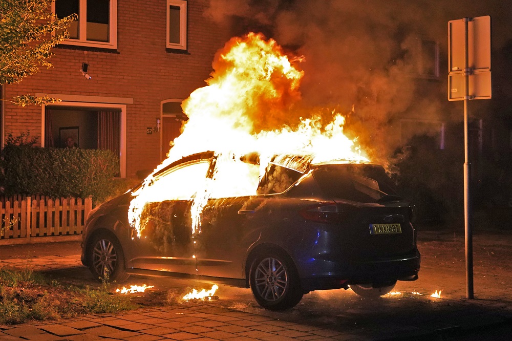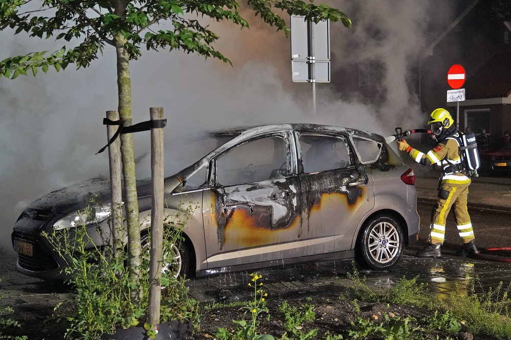 Omwonenden hoorden een harde knal en zagen het voertuig in lichterlaaie staan. De vlammen sloegen al snel uit alle ramen. De brandweer bluste het vuur, maar de auto brandde volledig uit.