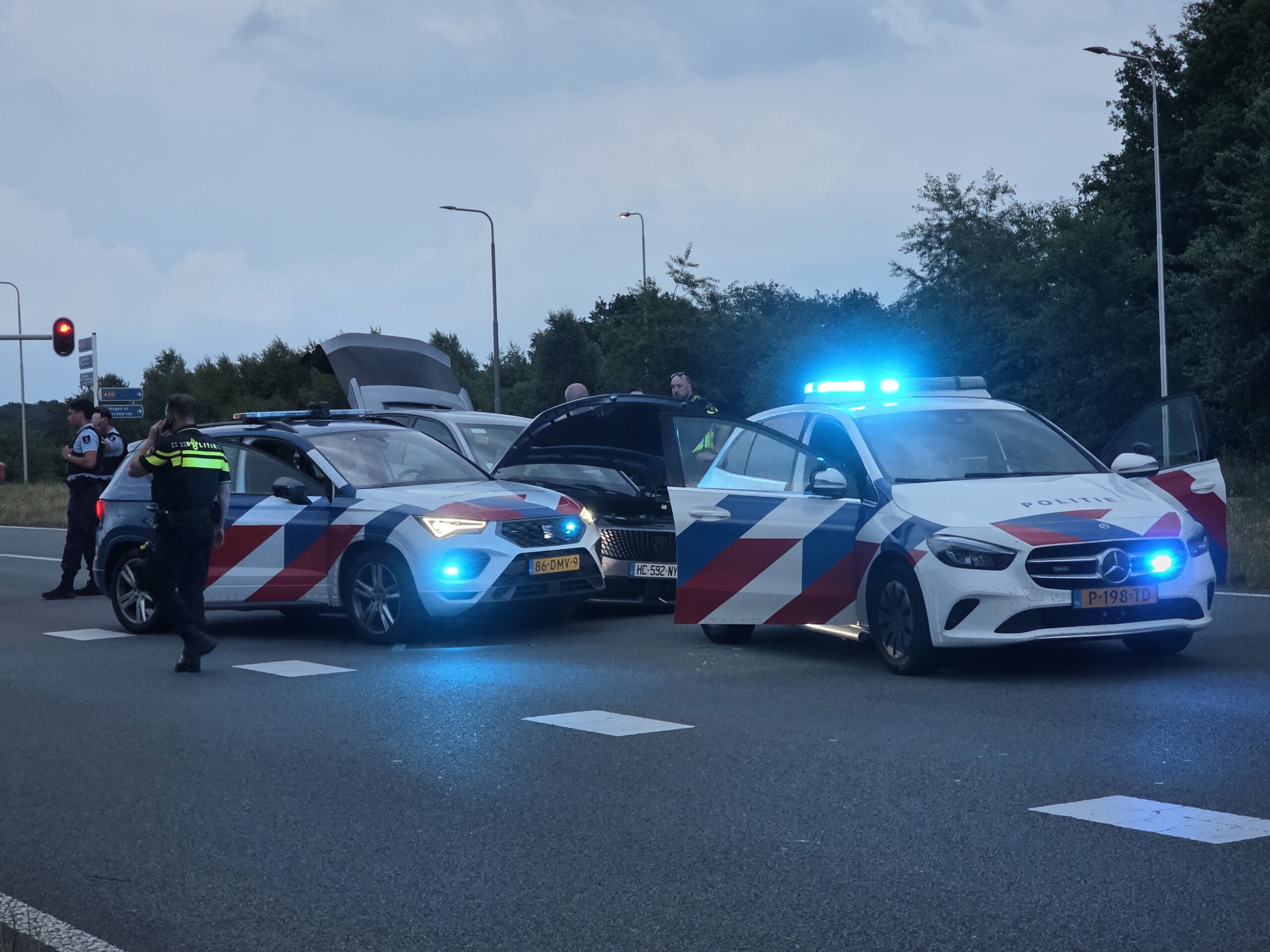 Politie en marechaussee rijden auto klem na wilde achtervolging