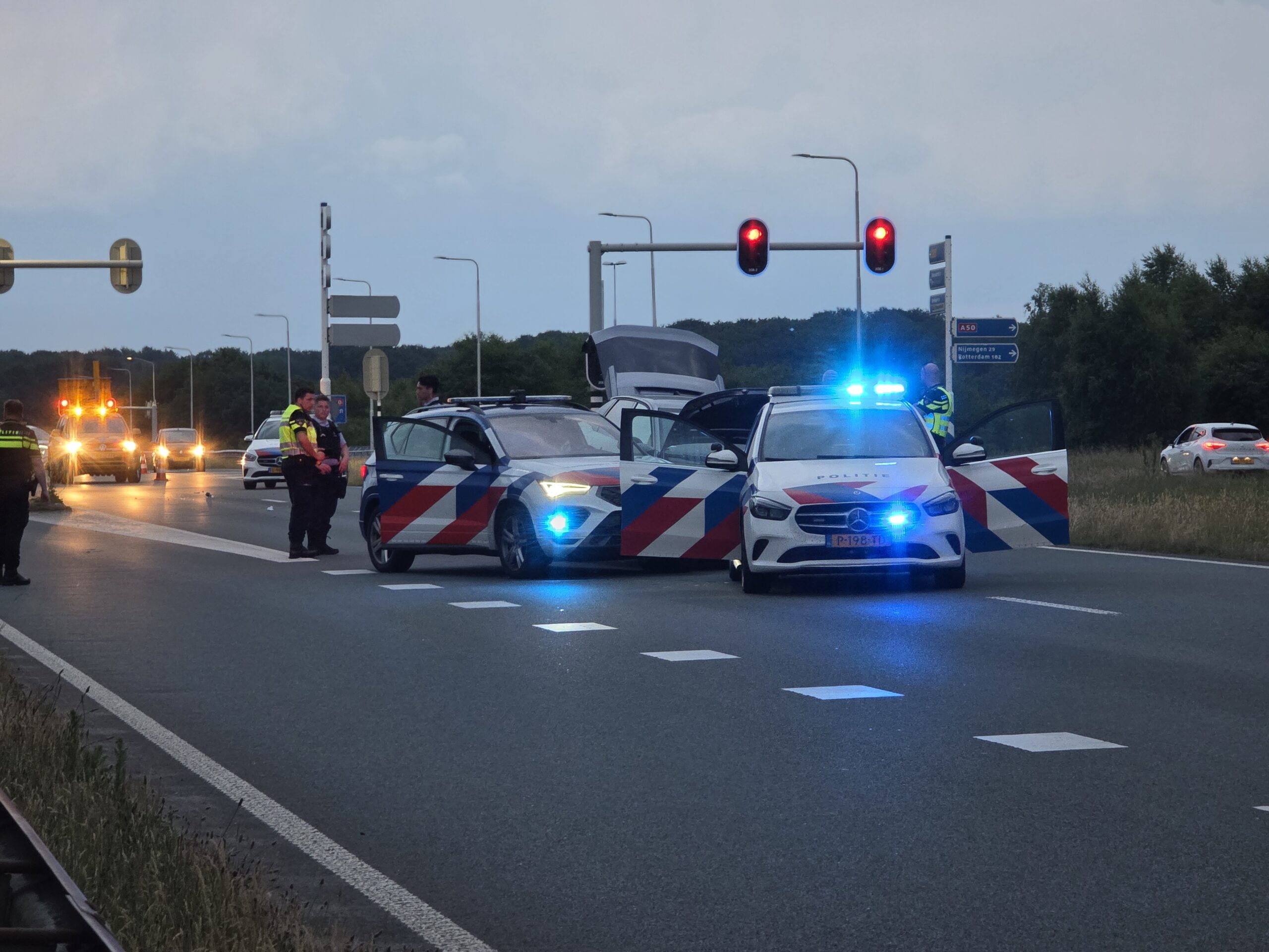 De auto werd klemgereden door politie en marechaussee. Twee inzittenden werden direct opgepakt; een derde werd met hulp van een politiehelikopter na een korte vlucht te voet ingerekend. De N225 was tijdelijk afgesloten. Er loopt een strafrechtelijk onderzoek.