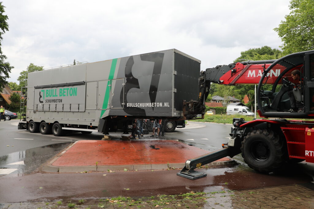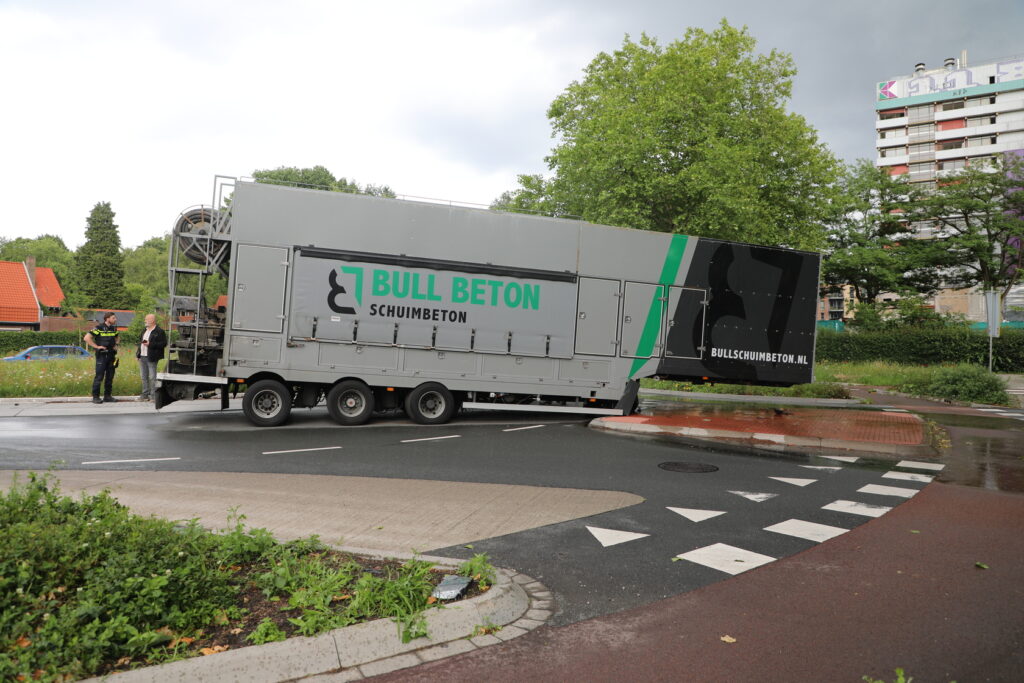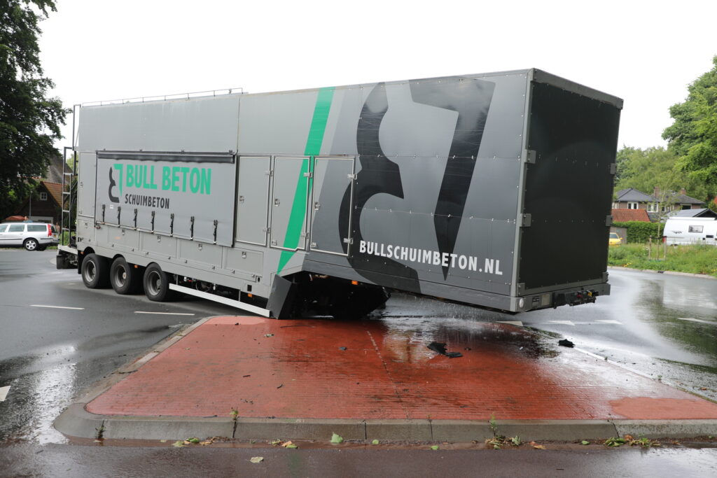 Vrachtwagenchauffeur verliest trailer op rotonde