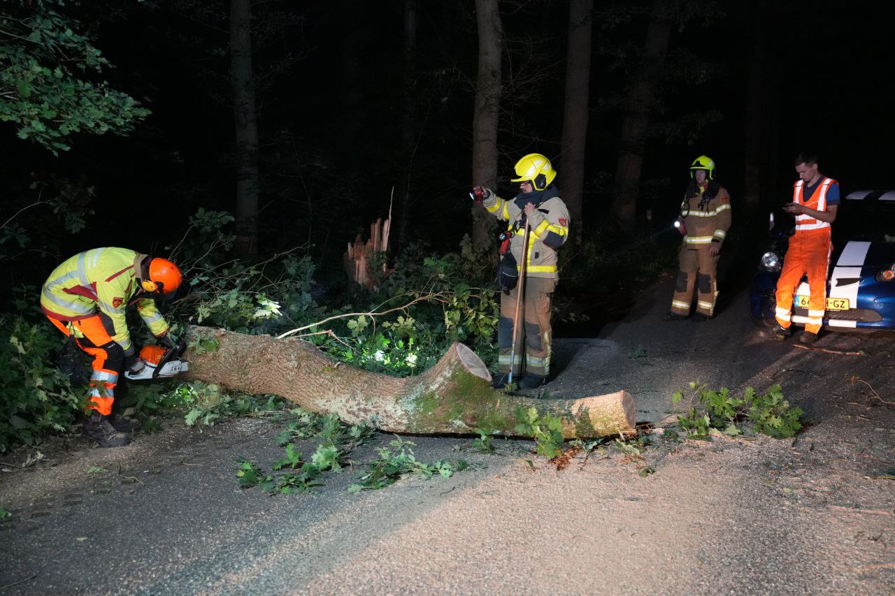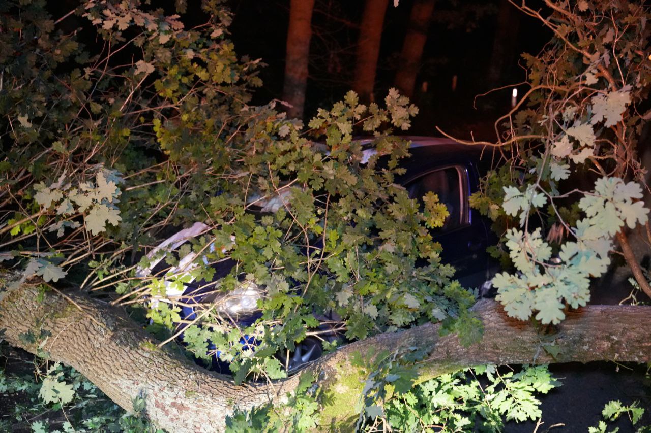 De brandweer heeft de boom in stukken gezaagd zodat de weg weer vrij was. Een bergingsbedrijf heeft de beschadigde auto afgevoerd.