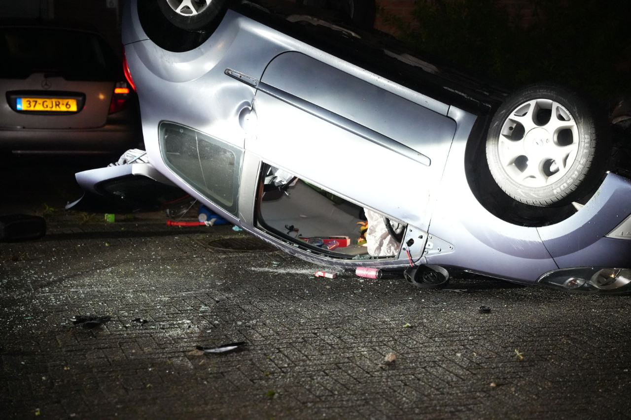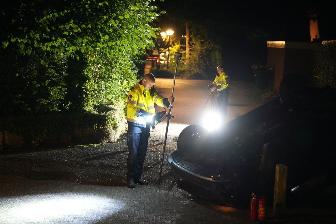 APELDOORN – In de nacht van vrijdag op zaterdag is een politieachtervolging geëindigd in een crash aan het Krijgsmansveld in Apeldoorn. Een automobilist negeerde een stopteken en sloeg op de vlucht, waarna het voertuig op de kop tot stilstand kwam na een botsing tegen een muurtje en paaltje.
