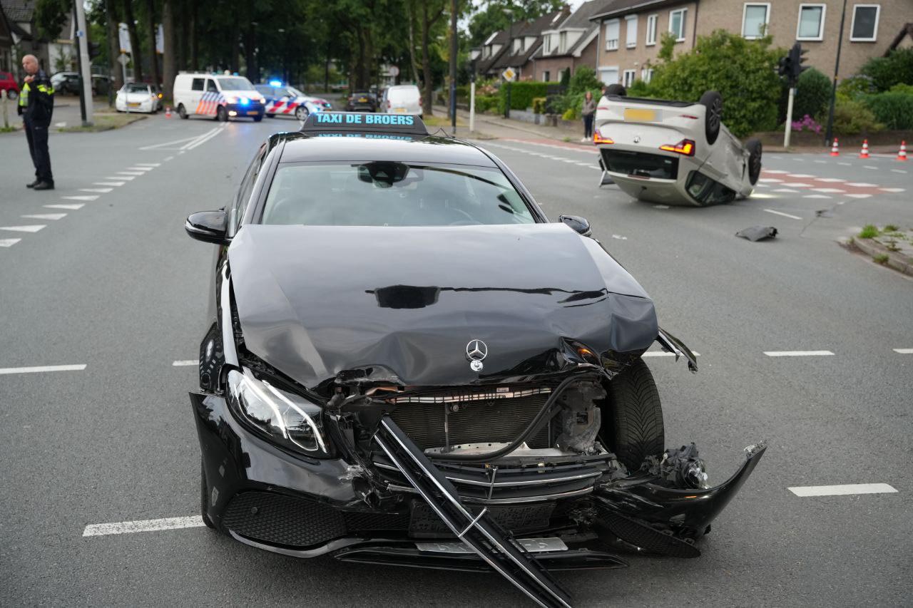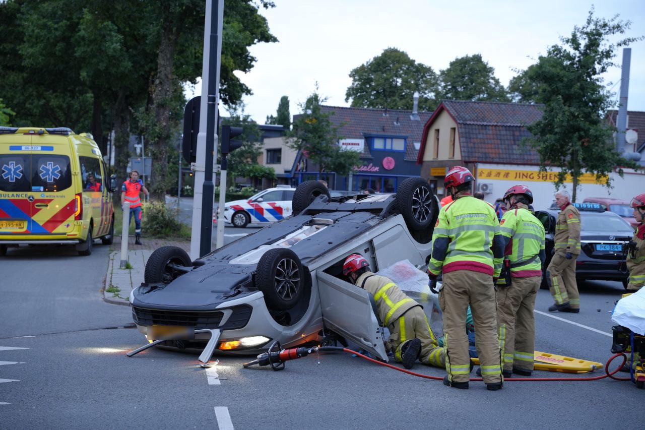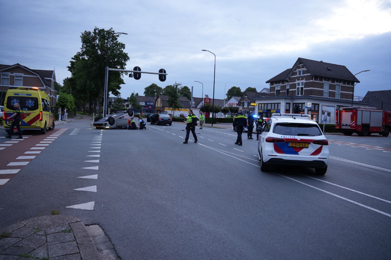 Twee gewonden bij ongeval op kruising, auto over de kop