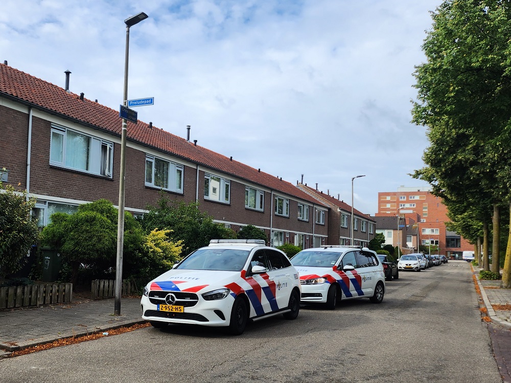 De verdachte werd korte tijd later een straat verderop aangetroffen en aangehouden. Hij is overgebracht naar het bureau. Agenten hebben op het adres met betrokkenen gesproken. Verdere details zijn nog niet bekend. Het onderzoek is in volle gang.