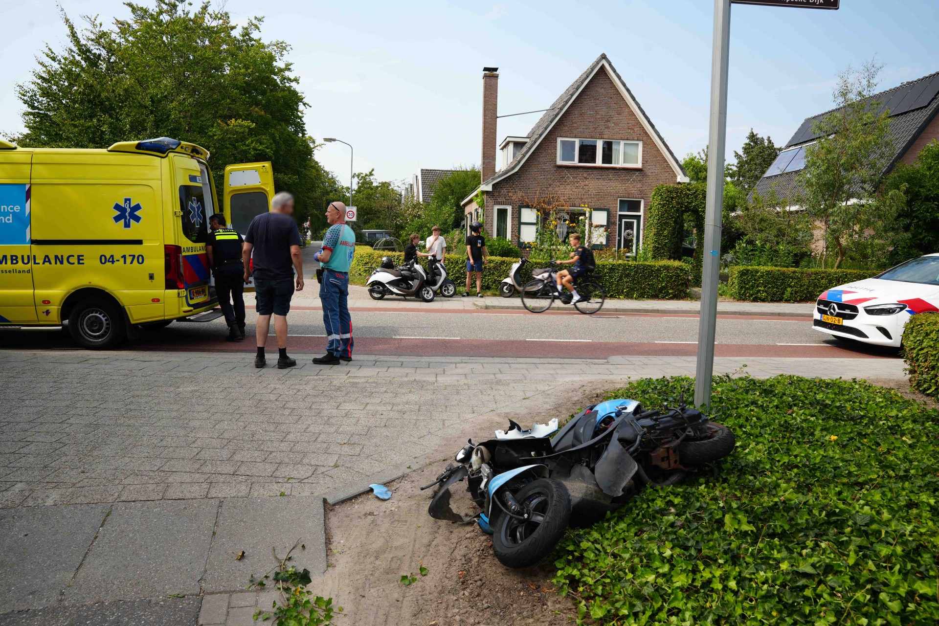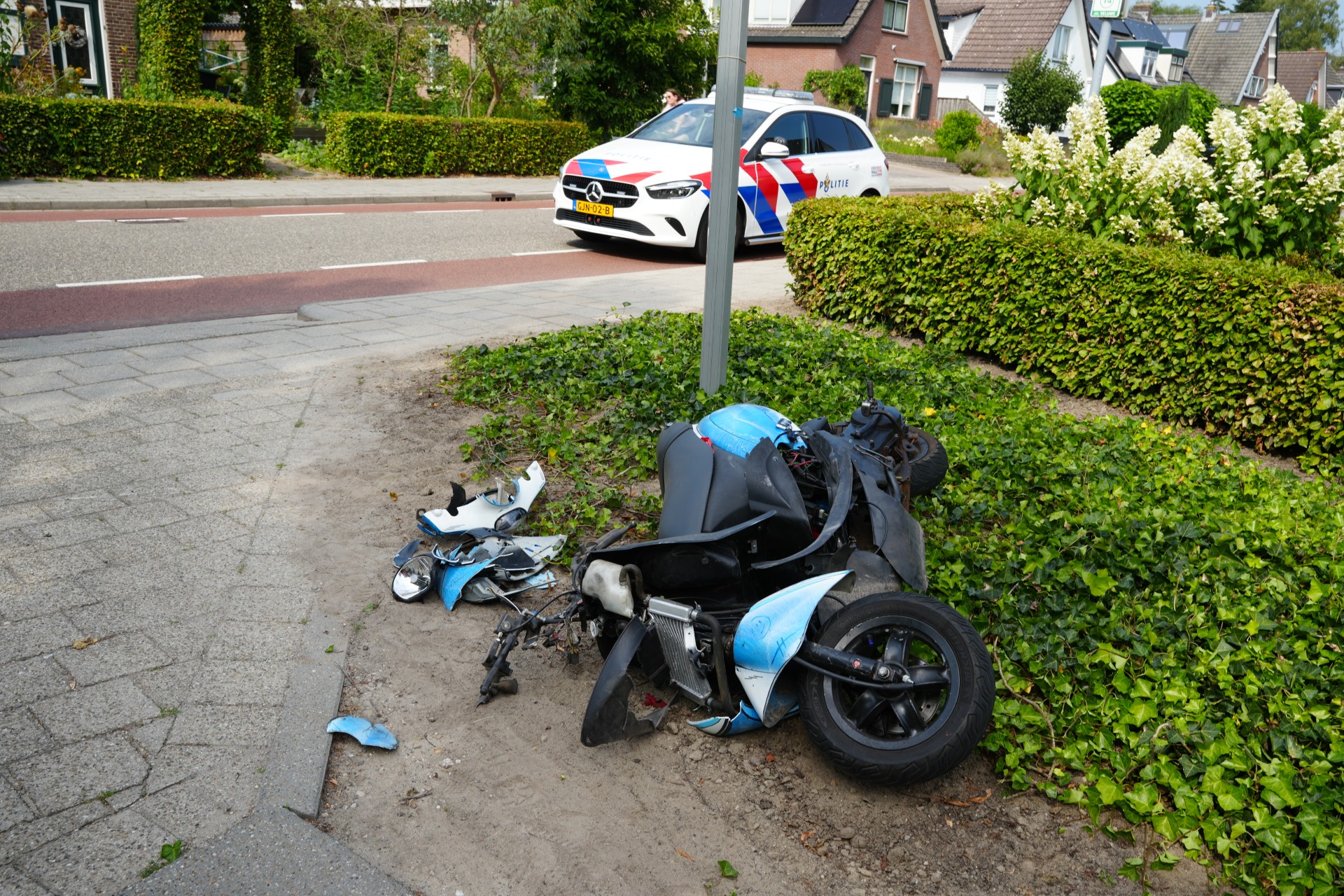 De trekker raakte niet beschadigd. De scooter had geen kentekenplaat, waarop de politie het voertuig in beslag heeft genomen voor verder onderzoek.