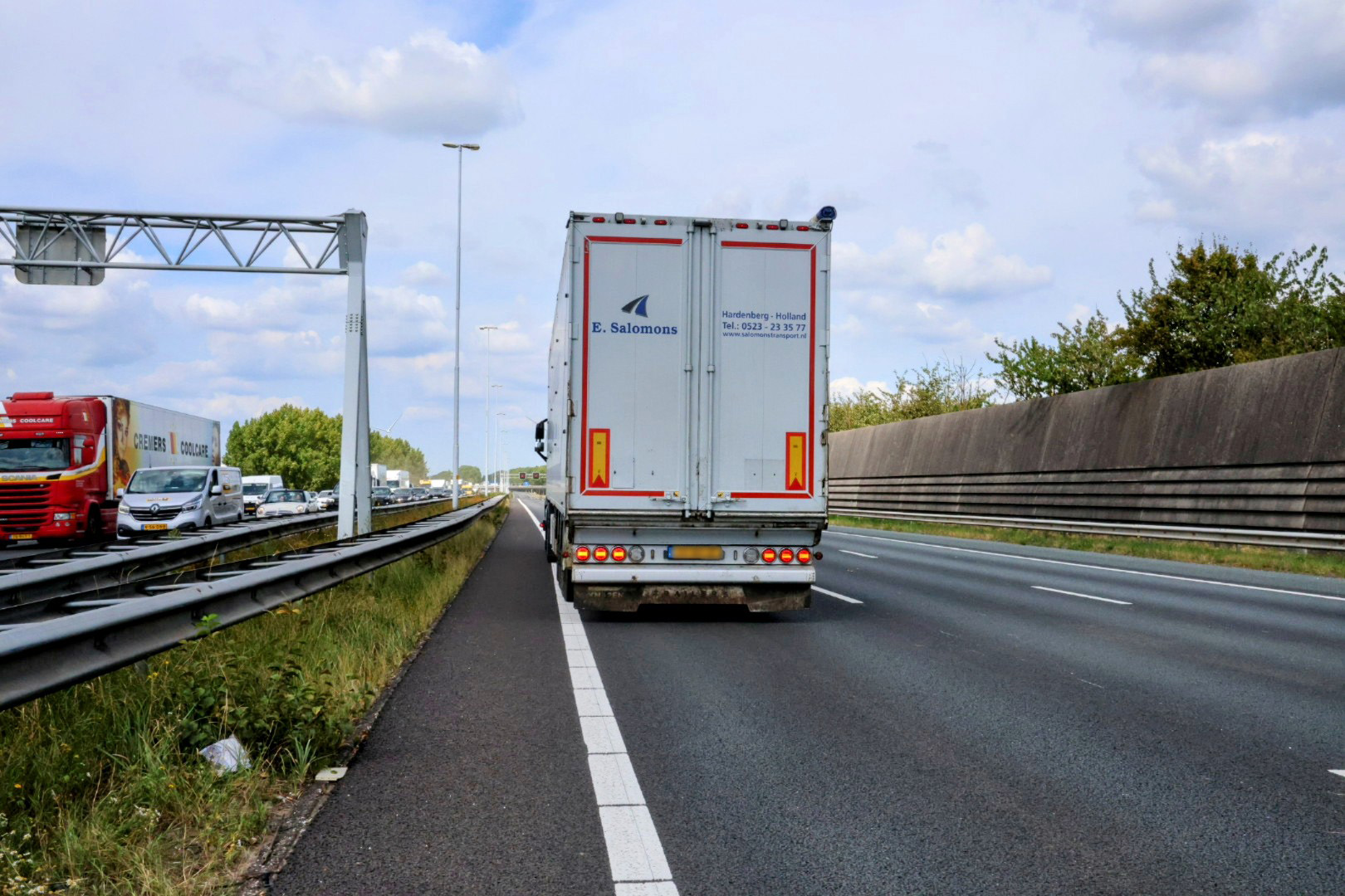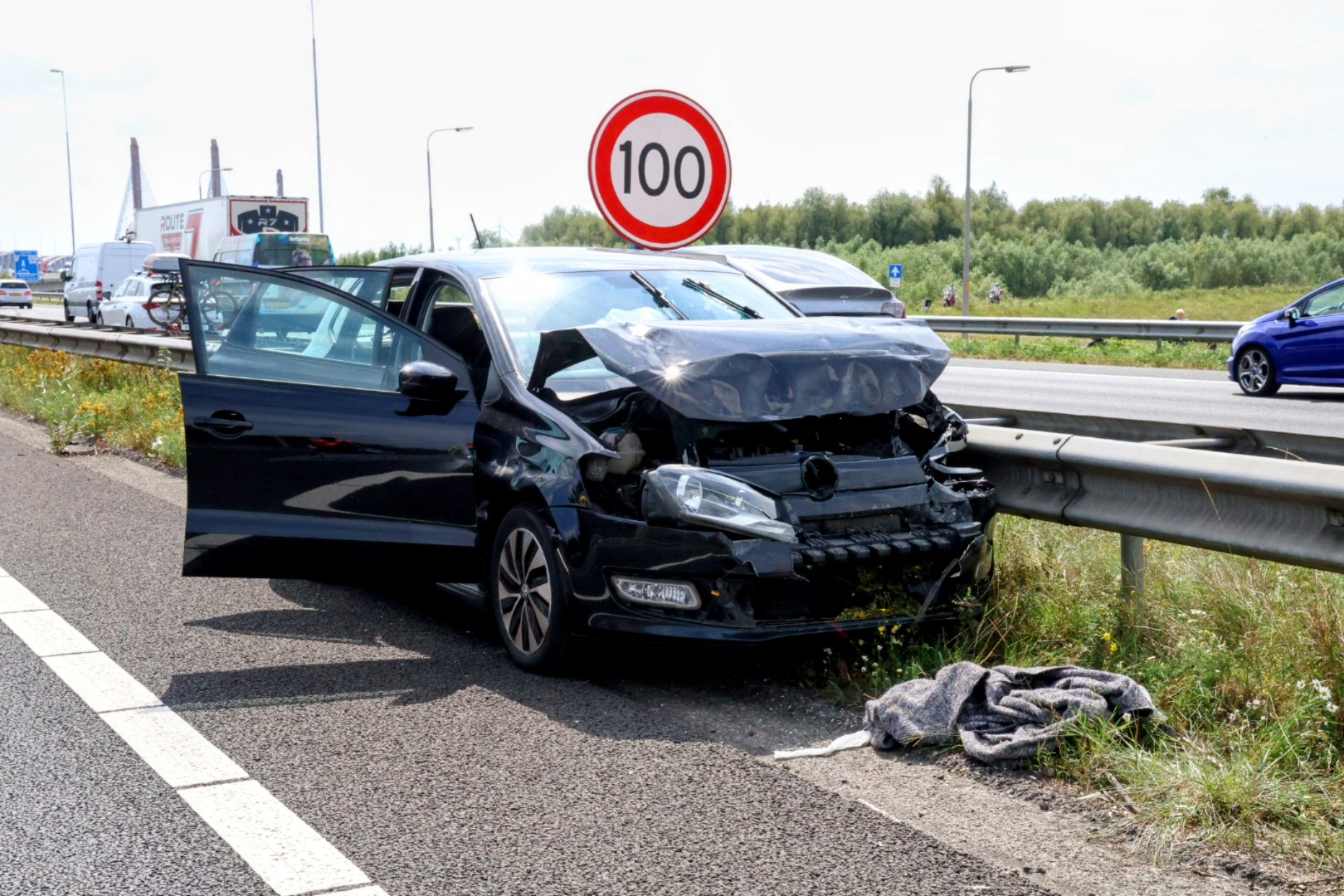 Auto botst achterop vrachtwagen op snelweg, bestuurder met spoed naar ziekenhuis