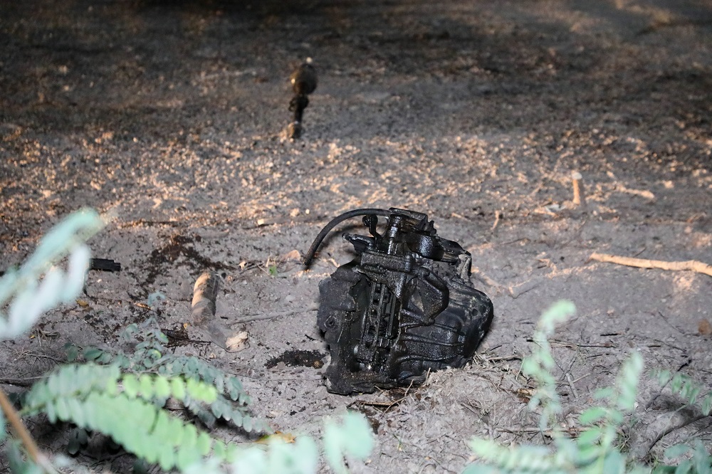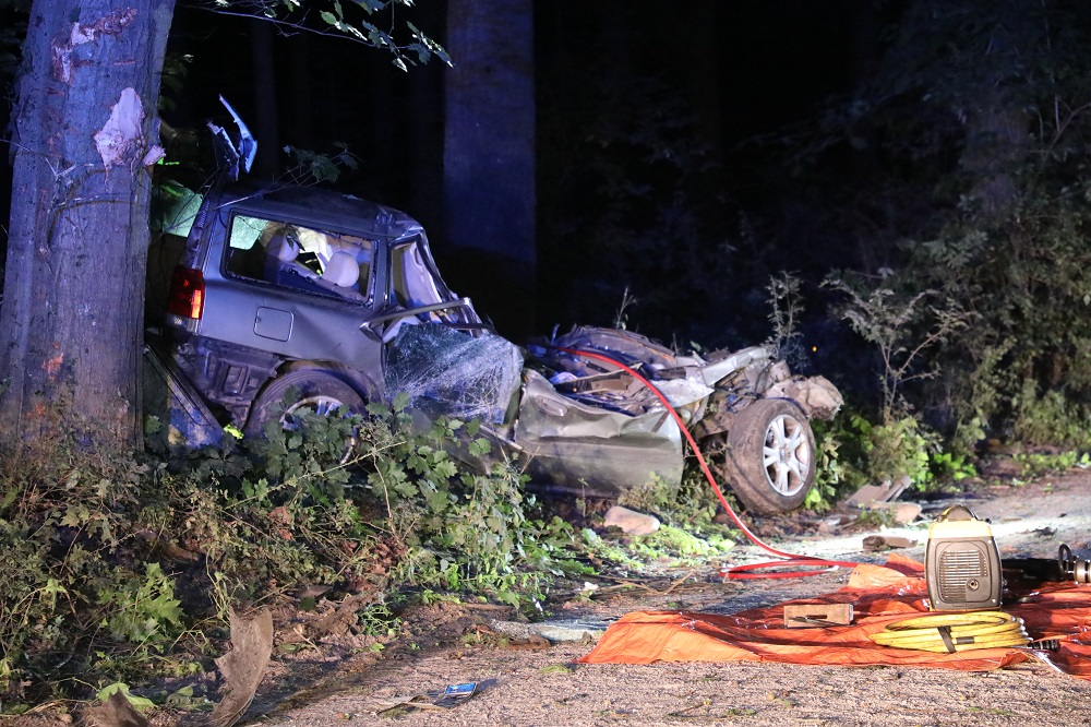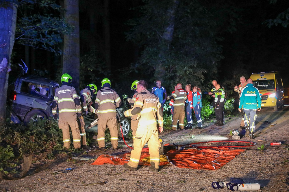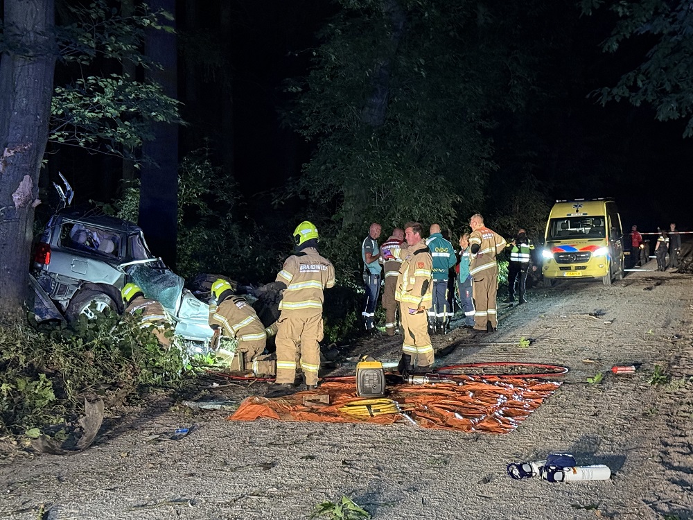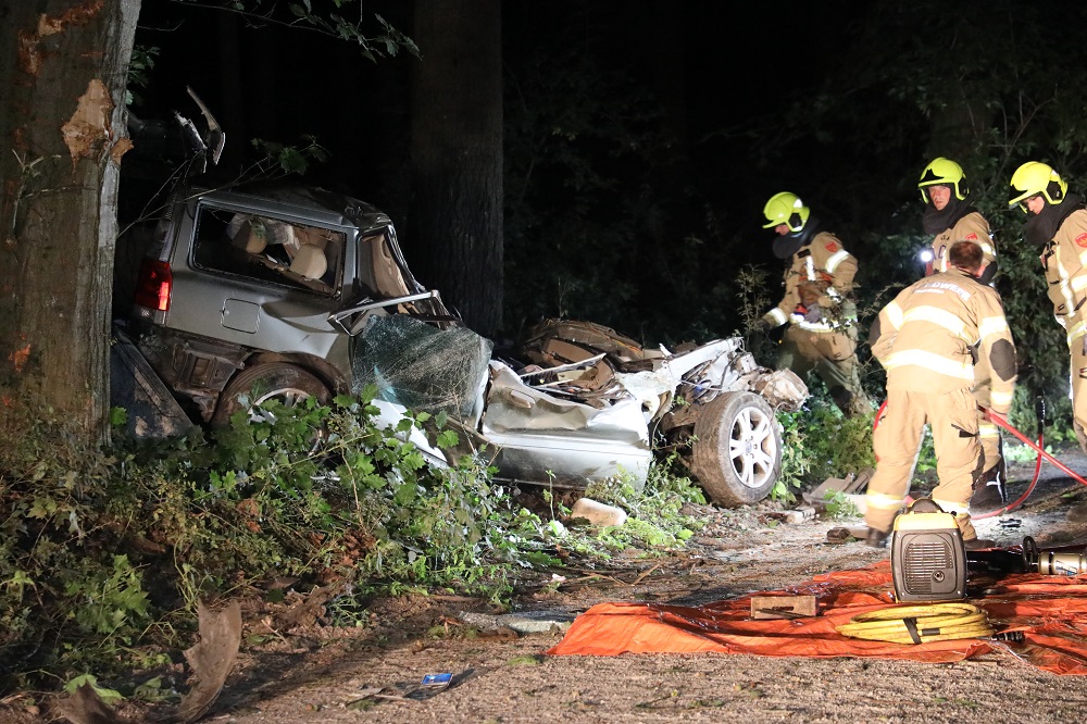 Een auto is op hoge snelheid van een grindpad geraakt en tegen meerdere bomen gebotst. Door de klap ontstond een grote ravage; het motorblok kwam tientallen meters van het voertuig terecht. Twee inzittenden raakten bekneld en zijn ter plekke overleden.