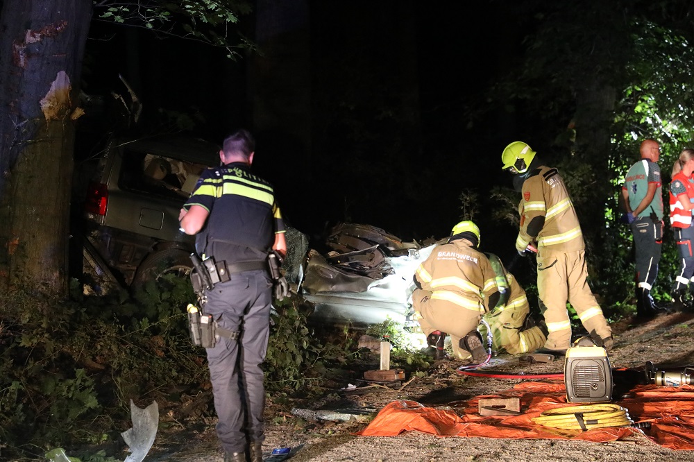 Twee doden bij ernstig ongeluk: auto platgedrukt door klap tegen boom