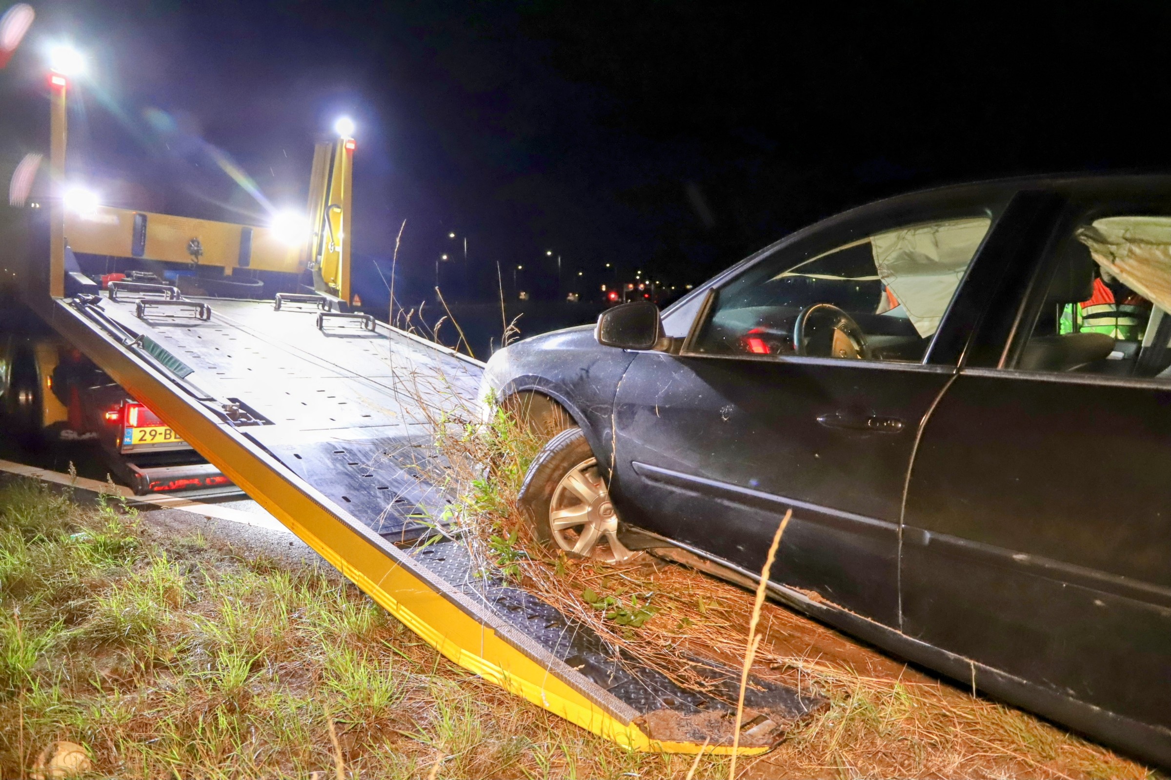 Een bergingsbedrijf heeft het zwaar beschadigde voertuig meegenomen.