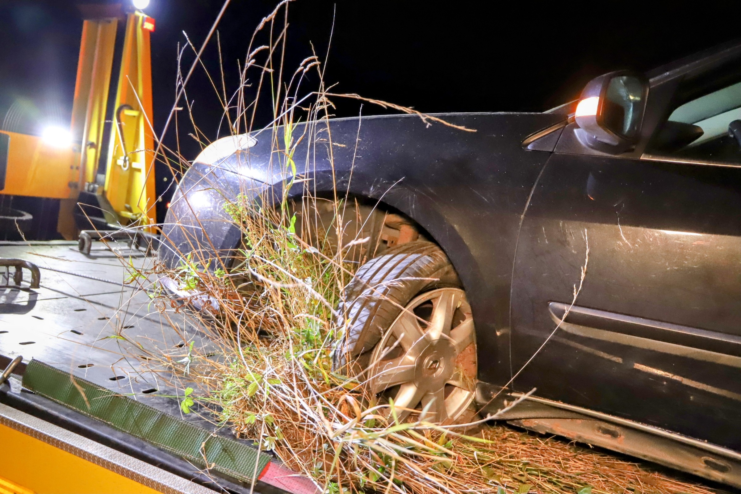 OCHTEN – Zondagnacht rond 01.35 uur is op de A15 richting Nijmegen, ter hoogte van de afrit Ochten, een personenauto van de weg geraakt. De bestuurder verloor de macht over het stuur en miste de bocht, waarna het voertuig via de berm in een diepe kuil terechtkwam en verderop tot stilstand kwam.