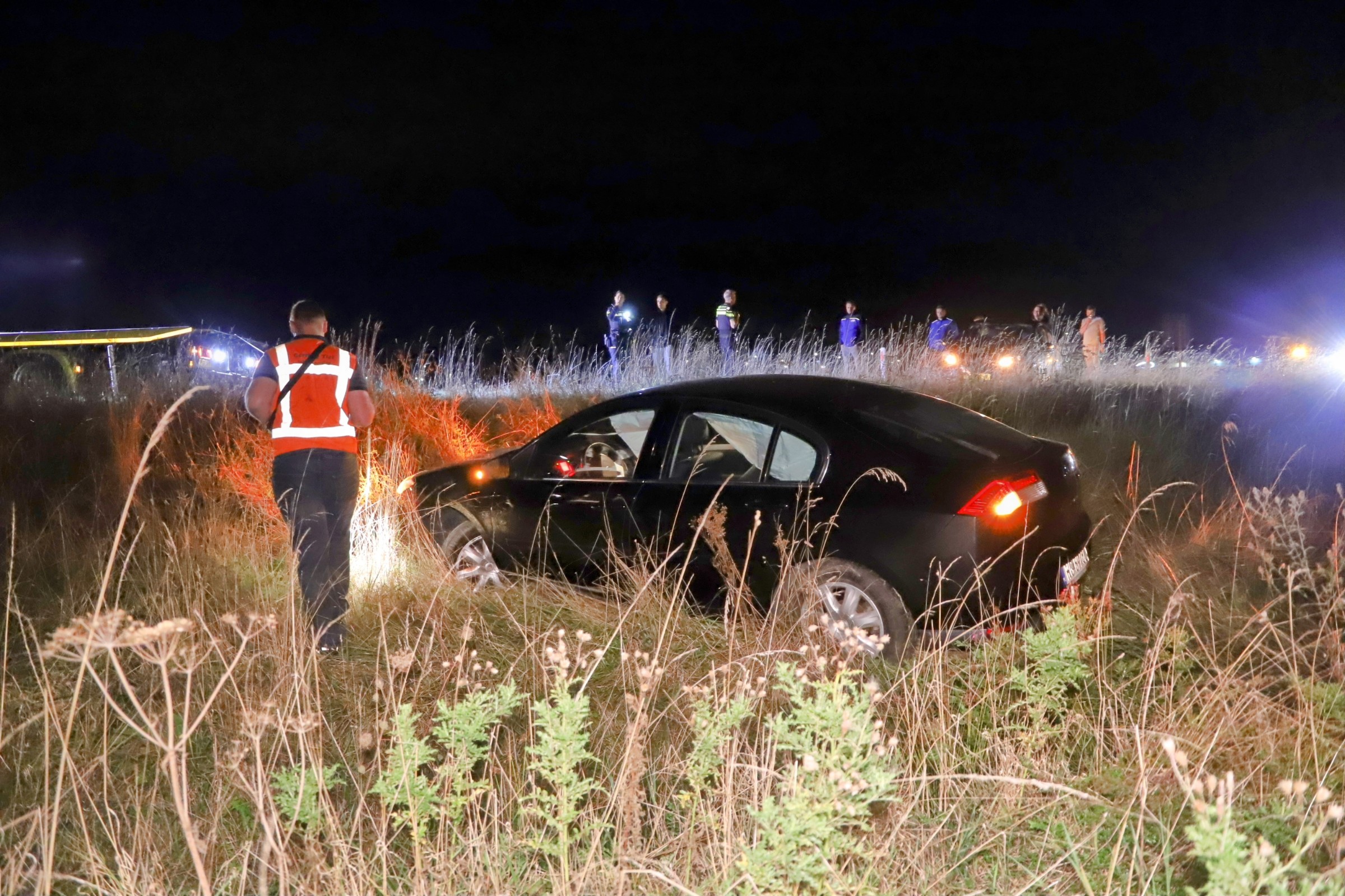 Auto raakt van A15 en belandt in berm