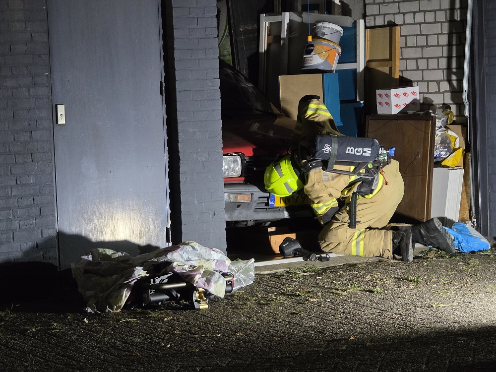De brandweer forceerde daarop de deur van een garagebox en trof binnen een auto aan. Even later kwam de huurder van de box ter plaatse.