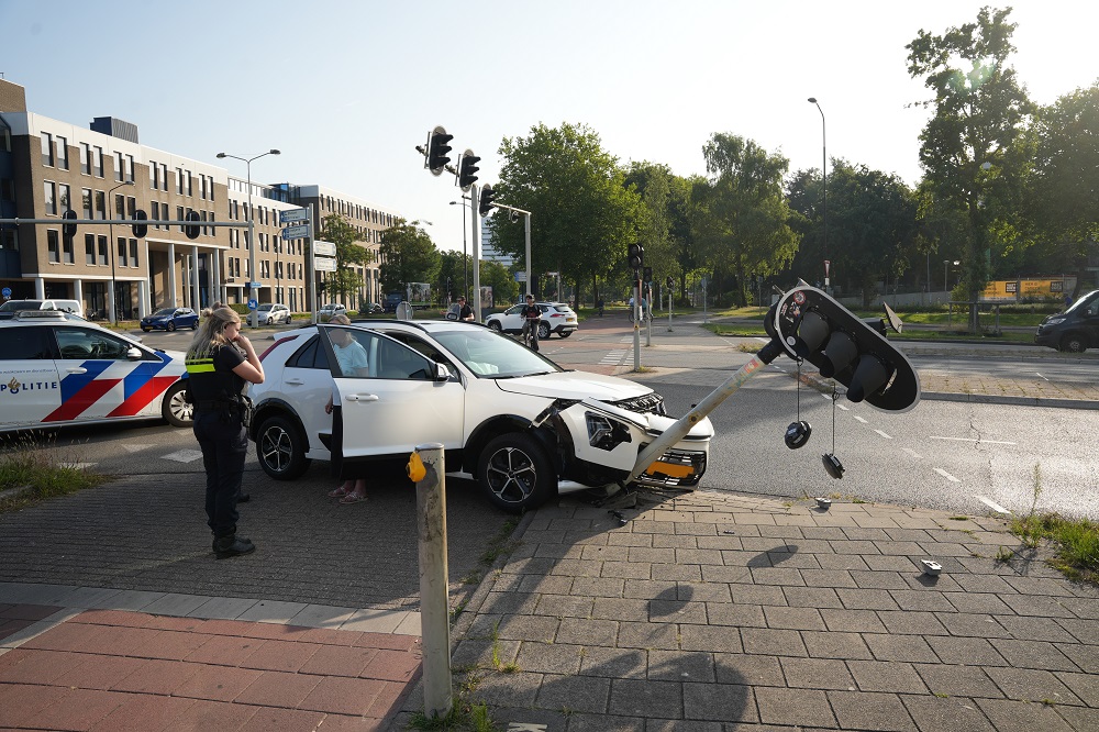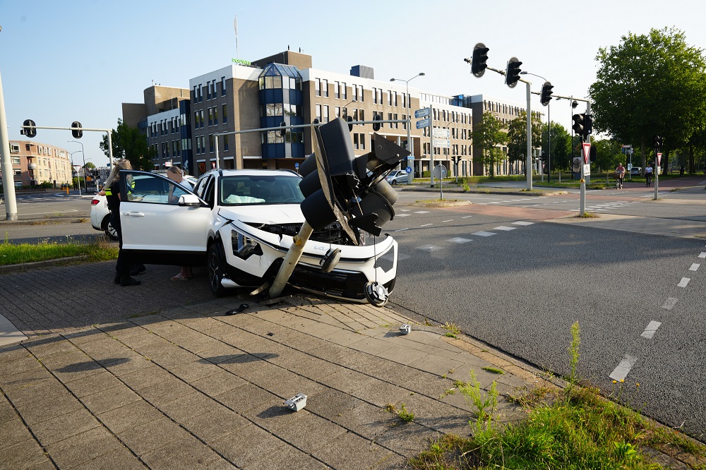 Door de aanrijding raakte het verkeerslicht scheef en onbruikbaar. De installatie is momenteel buiten werking. Overig verkeer kan de kruising passeren, maar dient rekening te houden met de situatie.