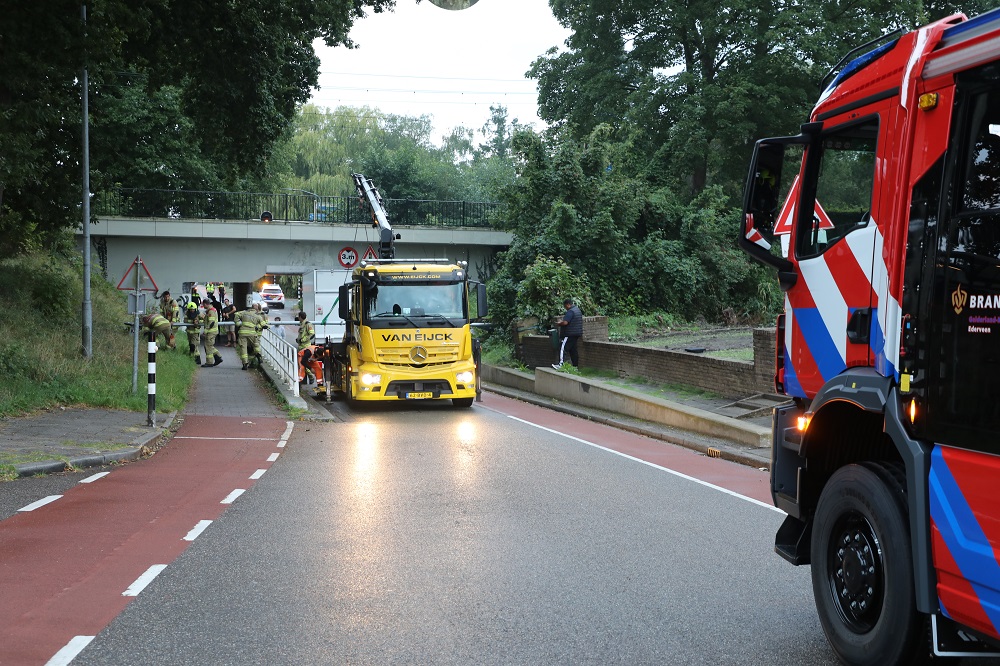 De bestuurder bleef ongedeerd, maar het dak van het voertuig liep schade op. Doordat het bord kantelde, kwam de bakwagen klem te zitten tussen het bord en het viaduct. De brandweer heeft samen met een bergingsdienst het bord verwijderd, waarna de vrachtwagen zijn weg op eigen kracht kon vervolgen.