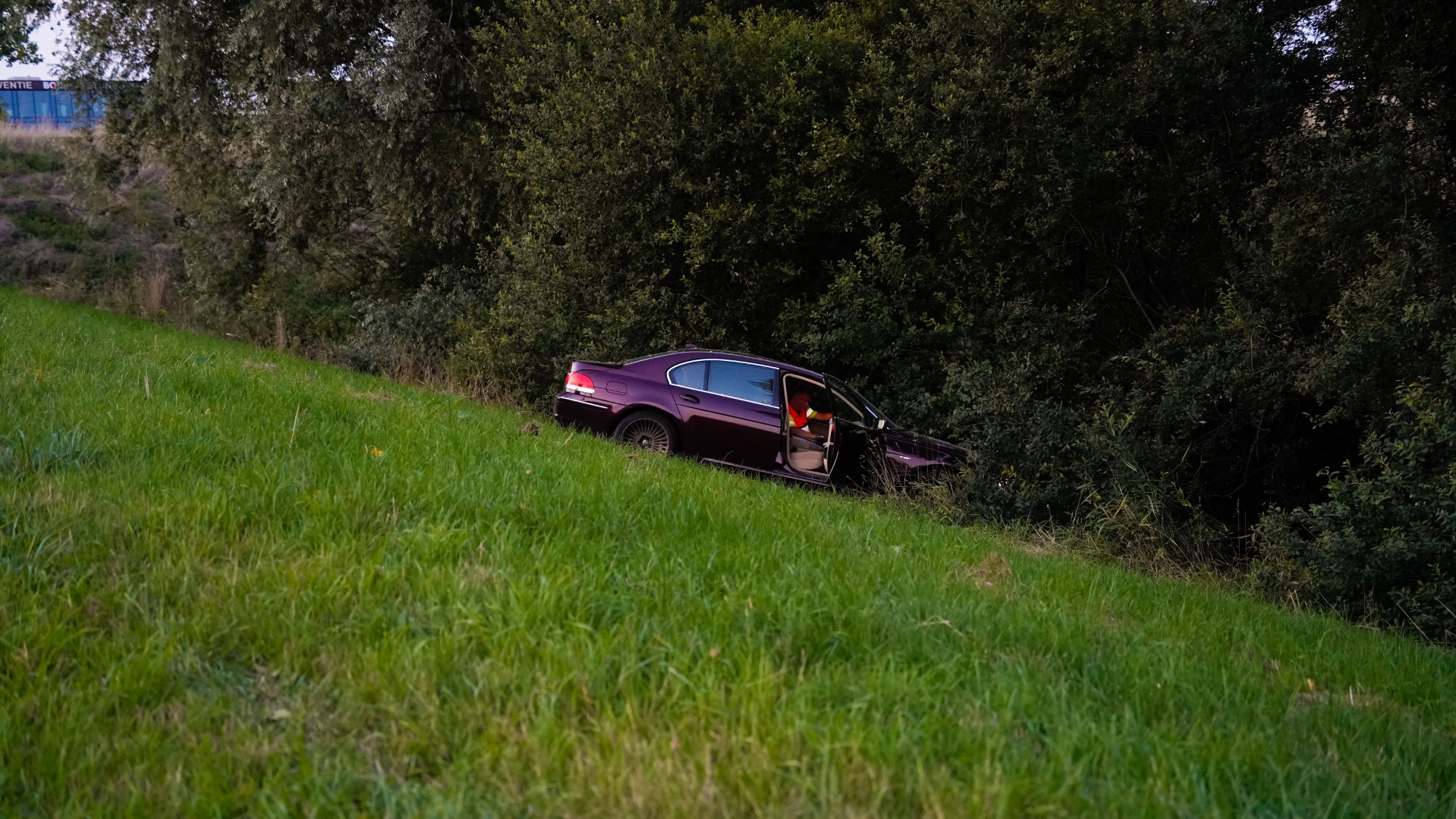Bestuurder belandt onderaan talud na botsing met lichtmast