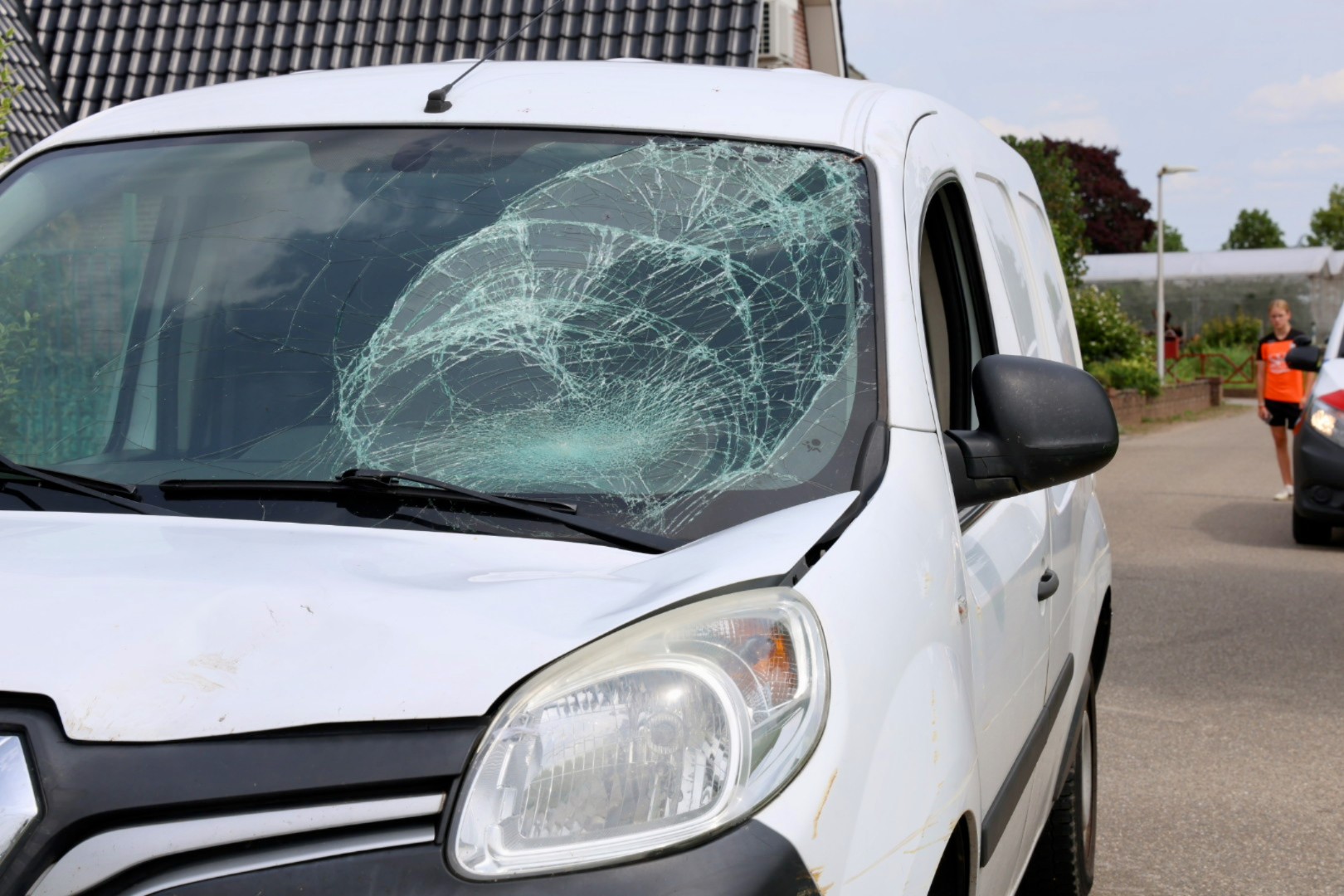 De voorruit van de auto liep zware schade op bij de botsing. Het incident wordt verder onderzocht.
