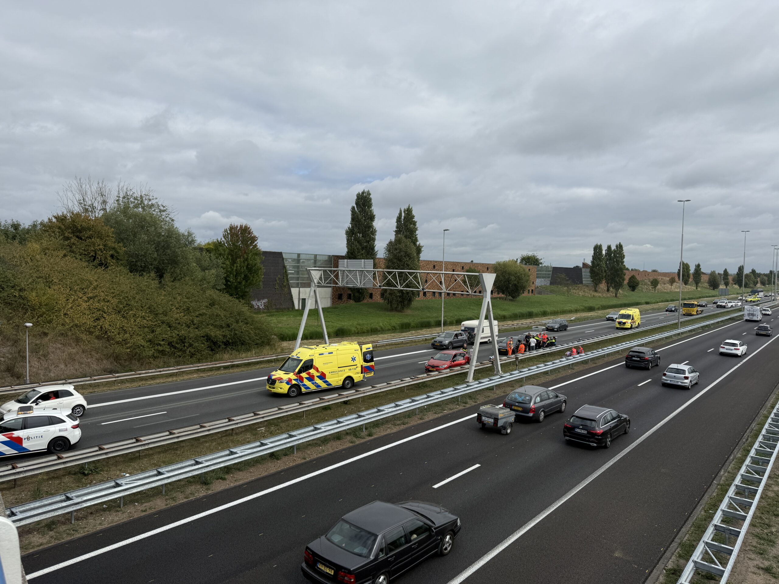 Het ongeval zorgde voor een lange file in beide richtingen, mede door kijkers aan de overzijde. De politie hielp de bestuurders bij het invullen van de schadeformulieren.