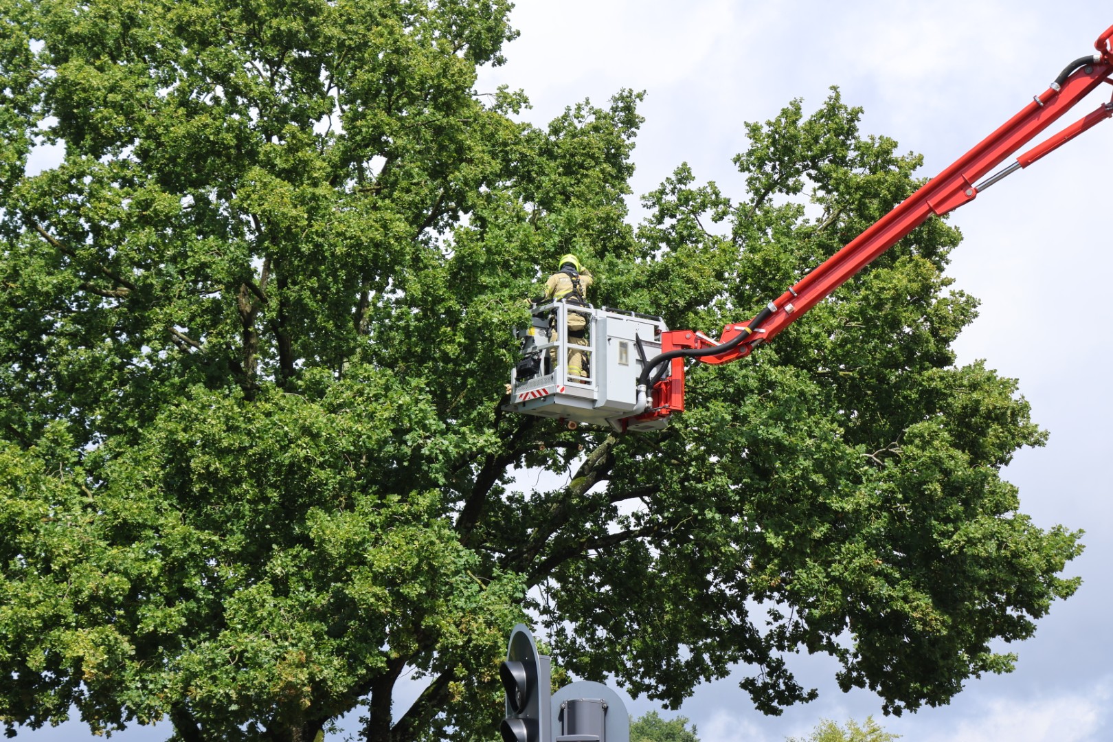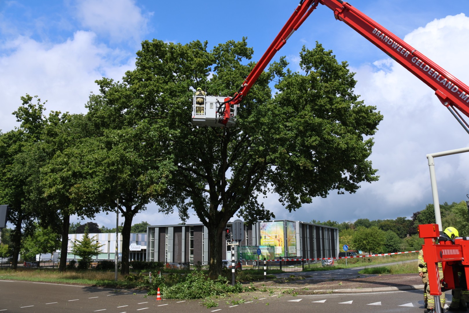 Uit voorzorg besloot de brandweer de weg volledig af te zetten. Met behulp van een hoogwerker zijn de loshangende takken veilig verwijderd. Politie en handhavers hebben het verkeer in goede banen geleid tijdens de werkzaamheden.