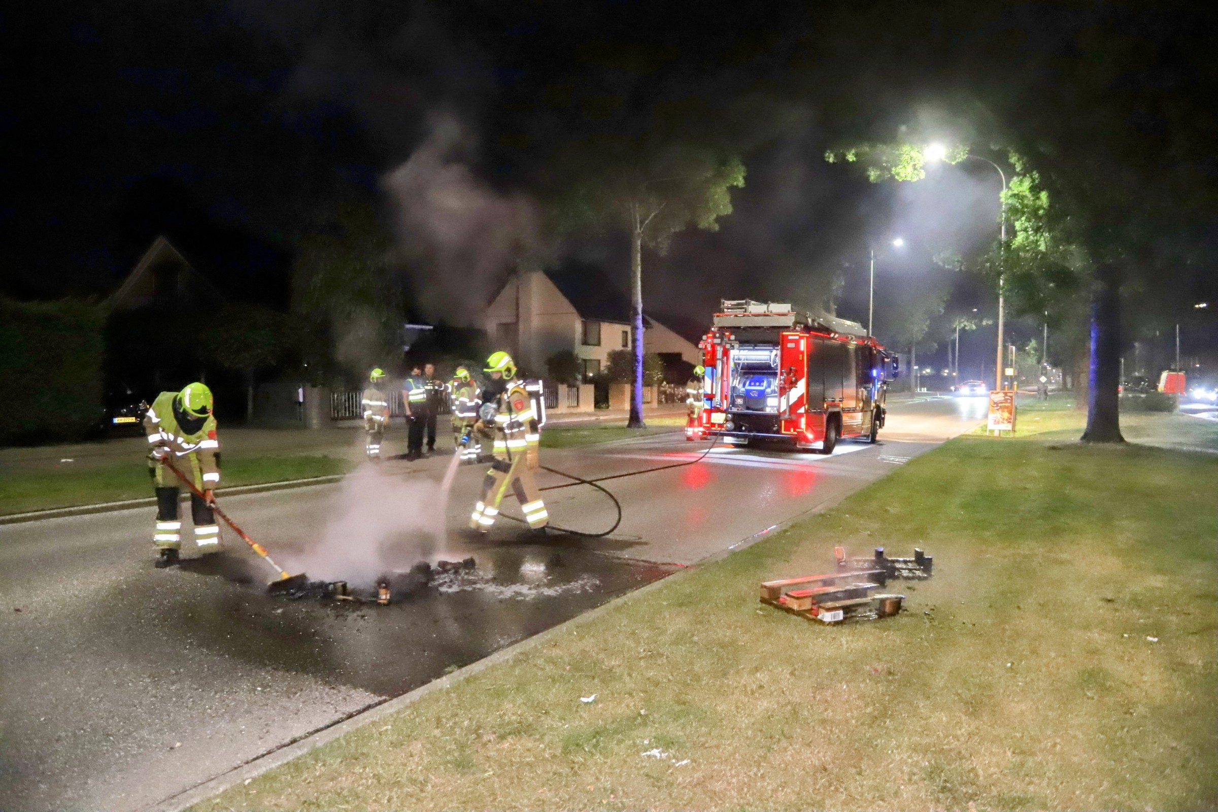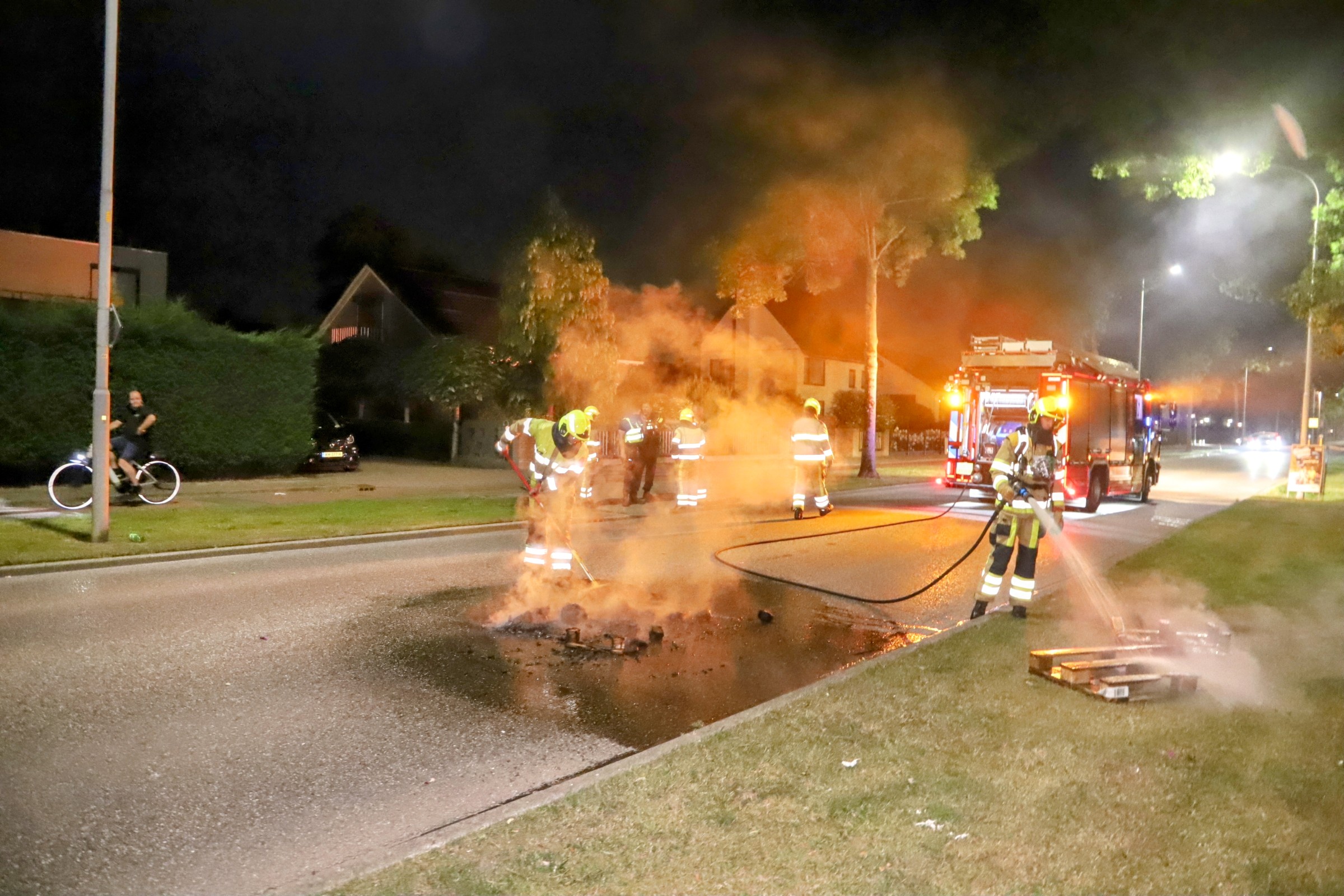 TIEL – Vrijdagochtend rond 02.50 uur is aan de Nieuwe Tielseweg, ter hoogte van de Diderik Vijghstraat, een aantal pallets in brand gestoken midden op de weg.