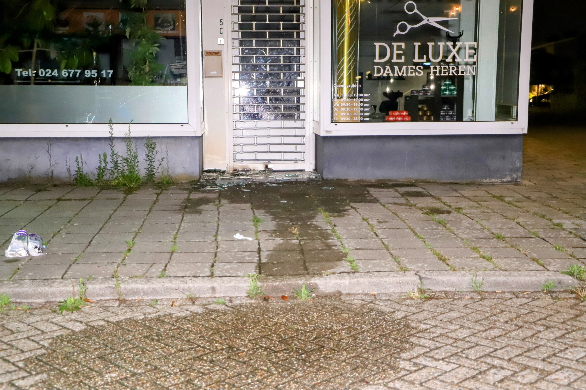 Korte tijd later volgde een melding van een harde knal bij de ingang van een kapperszaak. Hierbij raakte een ruit van een naastgelegen pizzeria beschadigd. De brandweer had het vuur snel onder controle, waardoor verdere schade werd voorkomen.
