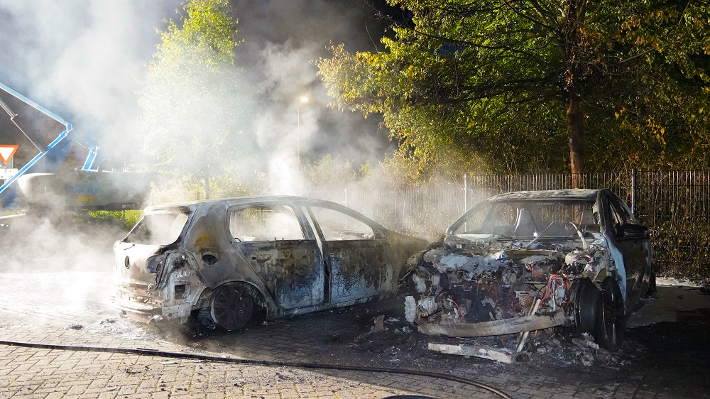 De brandweer kwam met spoed ter plaatse en wist het vuur te blussen, maar kon niet voorkomen dat beide auto’s verloren gingen.