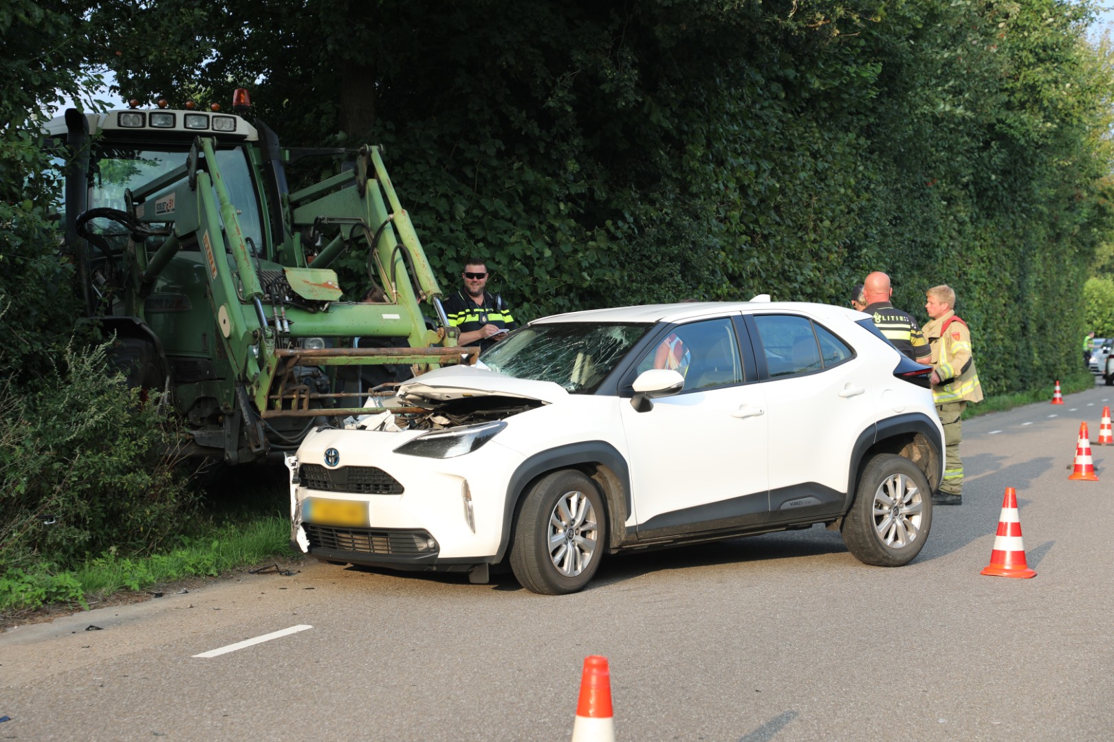 De rijbaan werd afgesloten voor verkeer, terwijl de auto door een bergingsbedrijf werd afgesleept. De trekker kon zijn weg zelfstandig vervolgen.