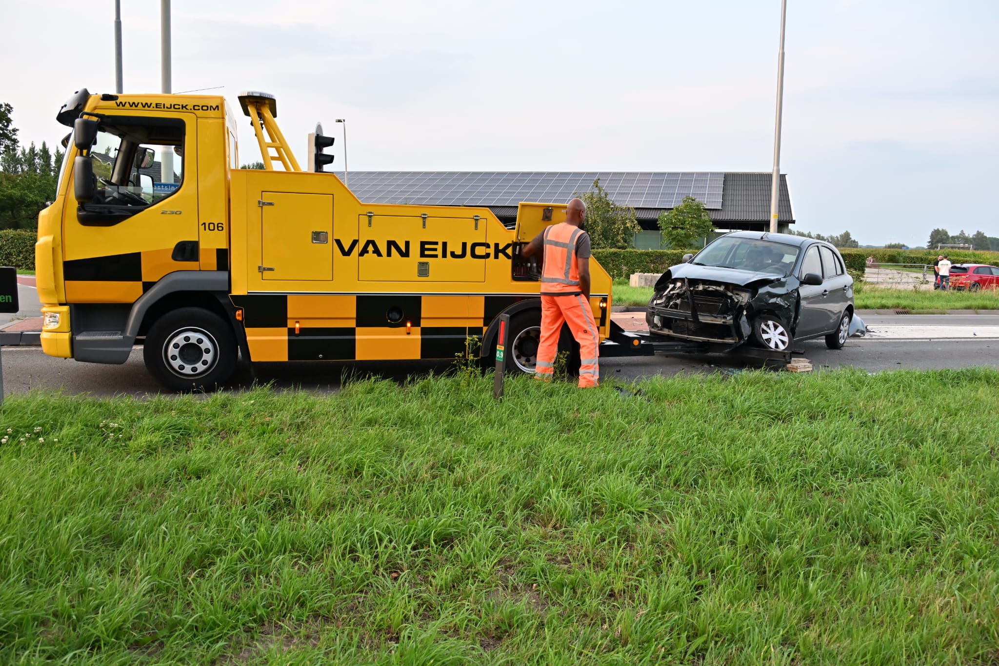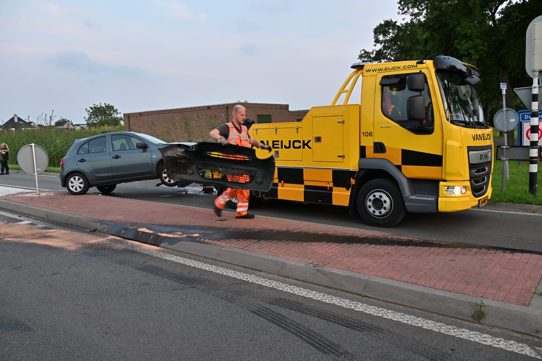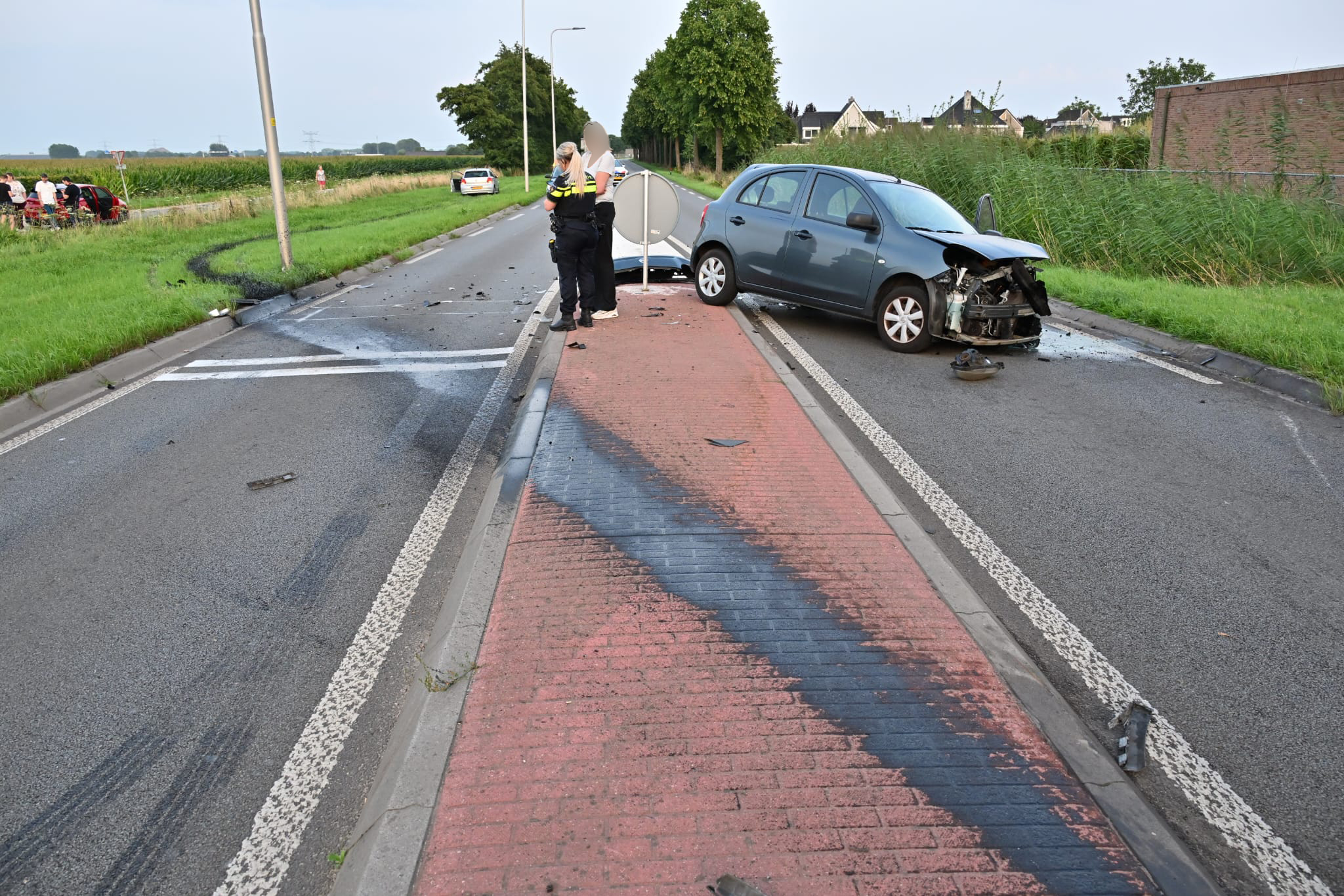 Weg bezaaid met brokstukken door botsing tussen twee auto’s