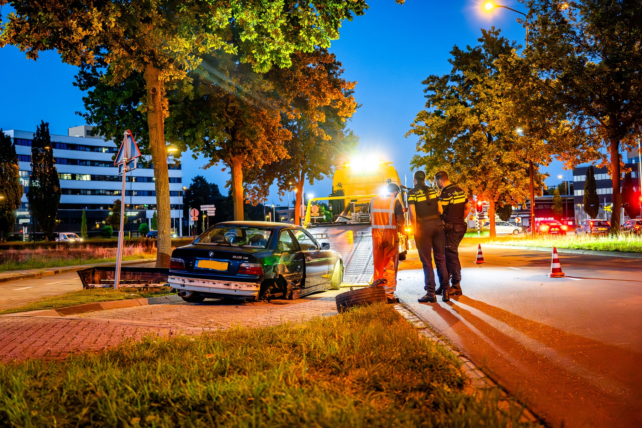 Auto crasht tegen boom, bestuurder mogelijk onder invloed