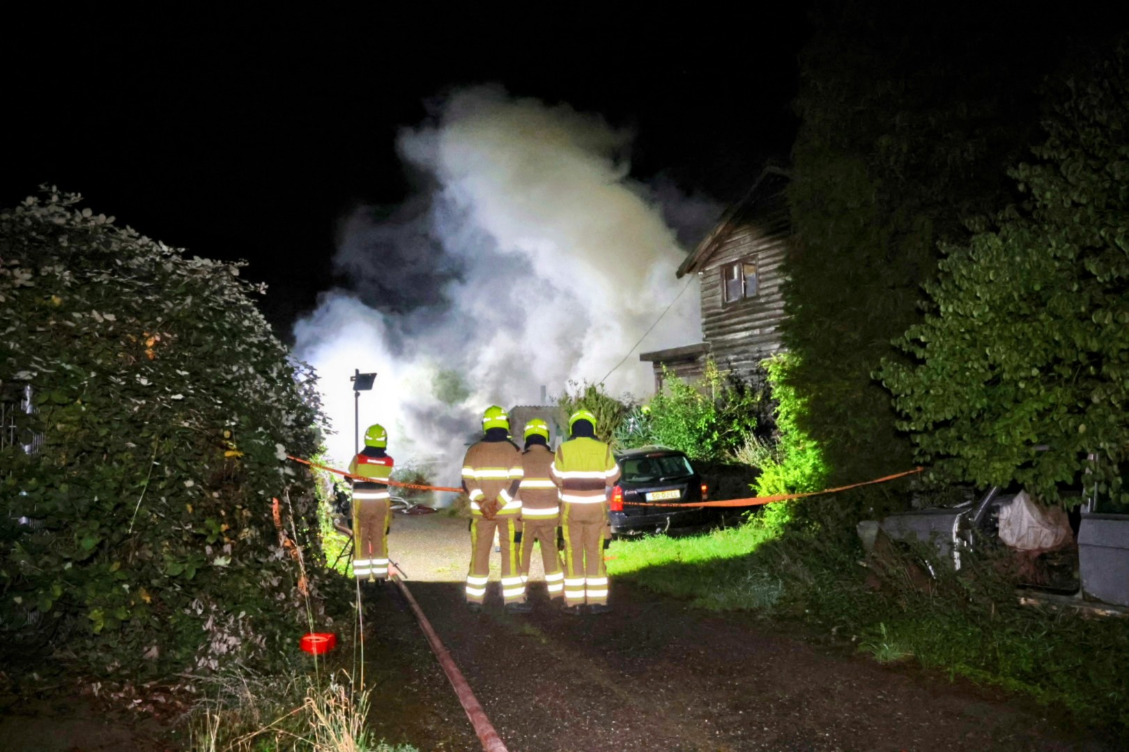 Omdat het dak van de schuur asbest bevatte, werd de omgeving afgezet.