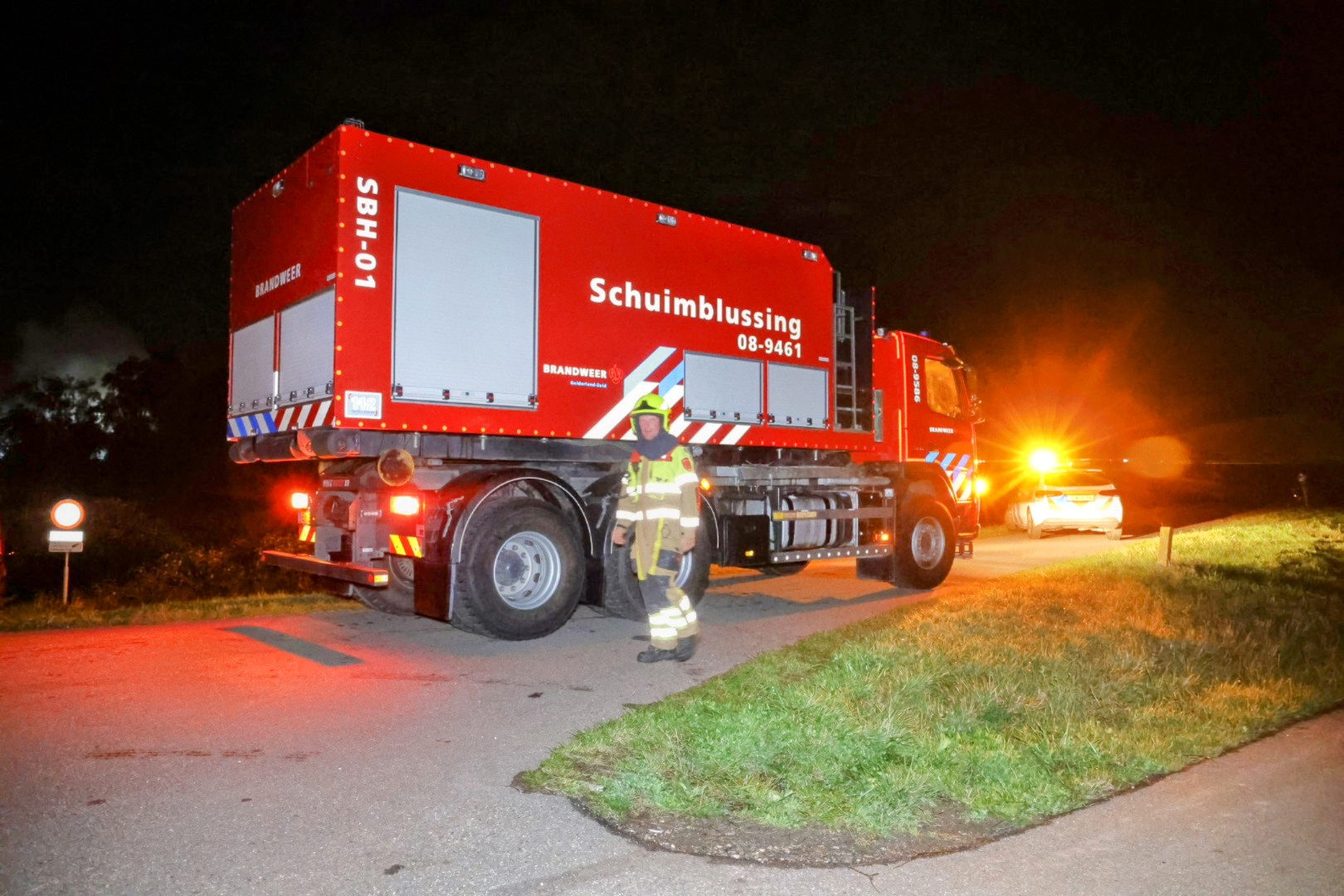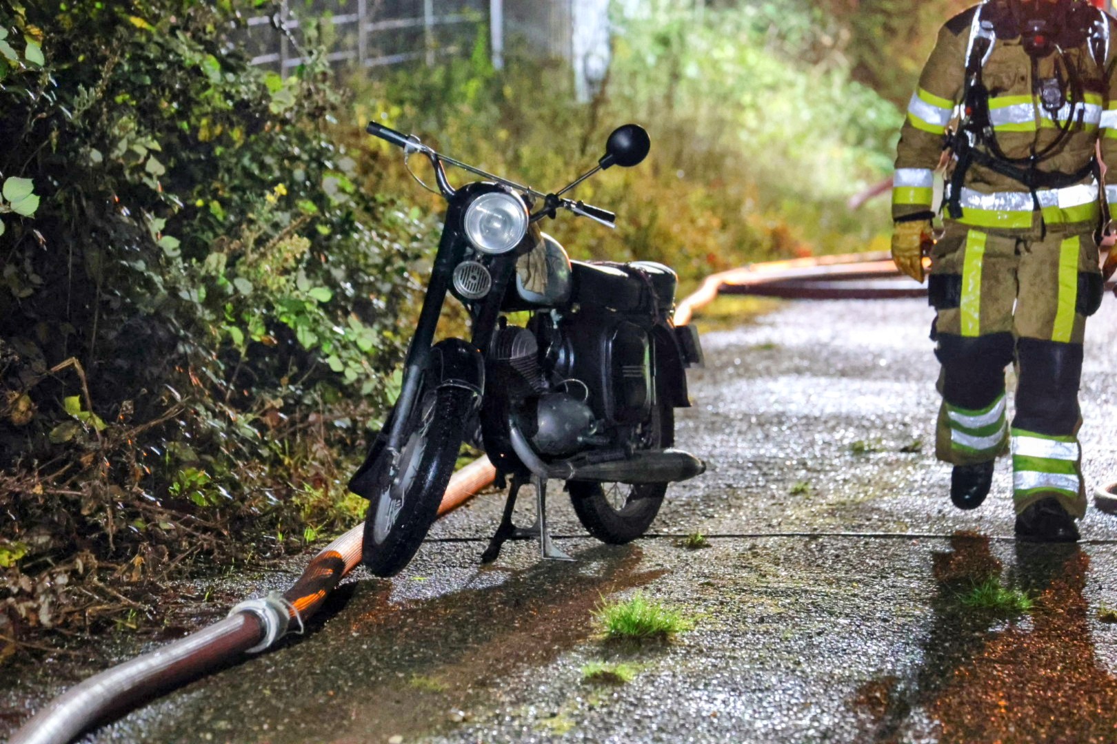 Uit het bijgebouw kon nog op tijd een motor worden gehaald. De brandweer kreeg ondersteuning van meerdere waterwagens om het vuur te bestrijden.