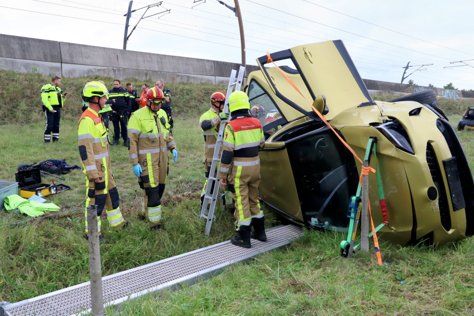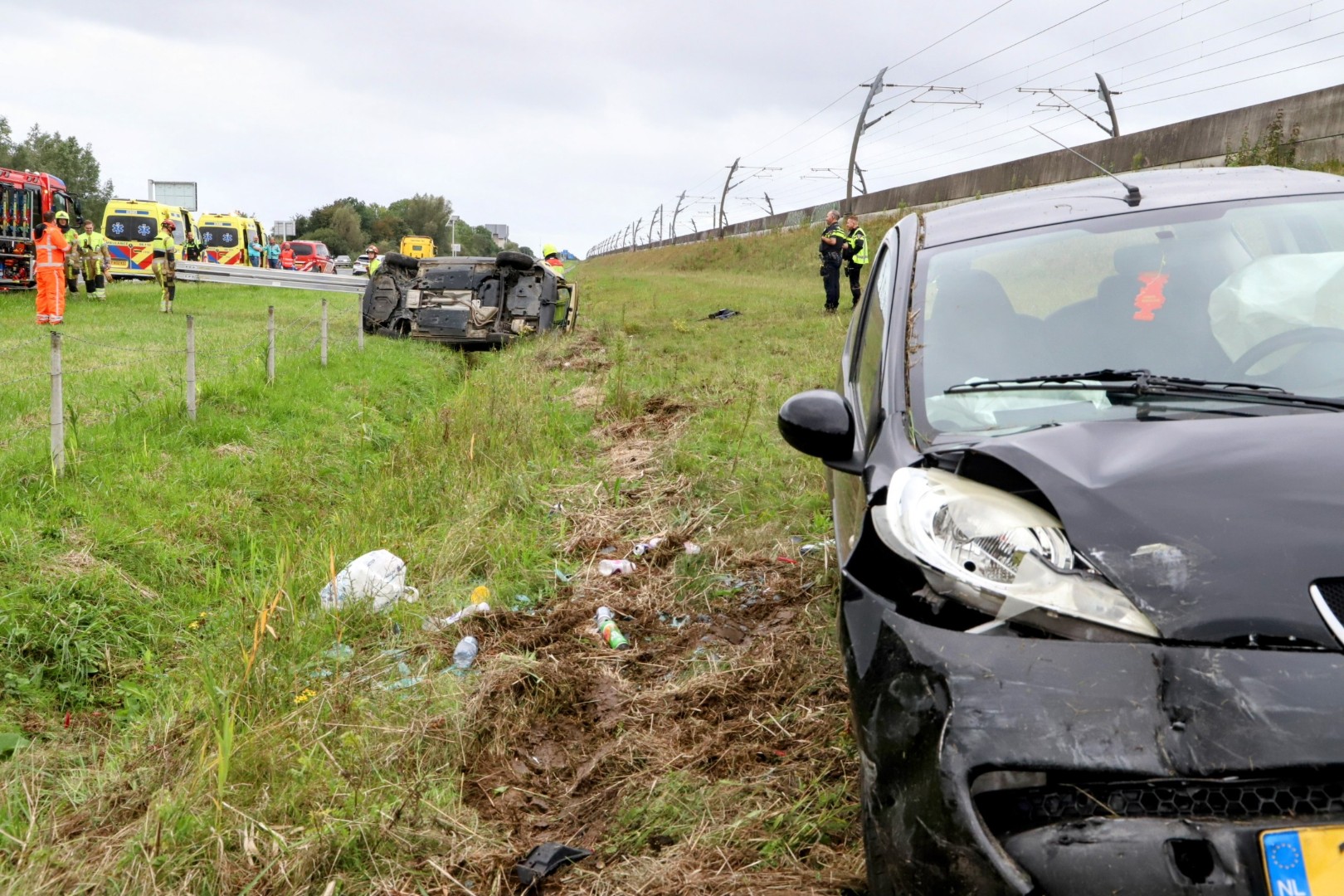 Twee personenauto’s kwamen met elkaar in botsing en belandden daarna in de berm. Eén van de voertuigen sloeg daarbij op de zijkant, waarna de brandweer de bestuurder moest bevrijden. De andere bestuurder kon zelfstandig uitstappen. Beide betrokkenen zijn per ambulance naar het ziekenhuis gebracht.