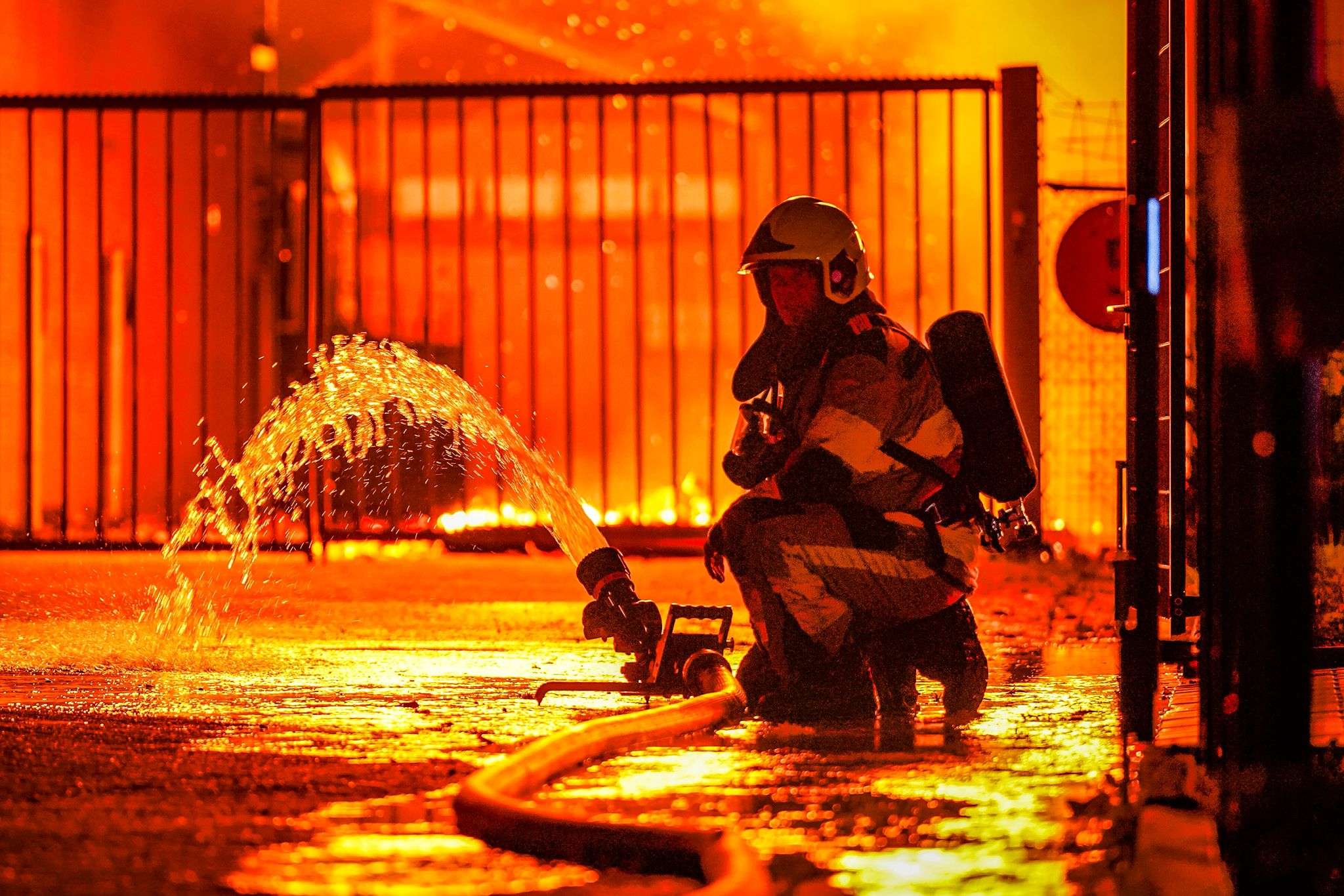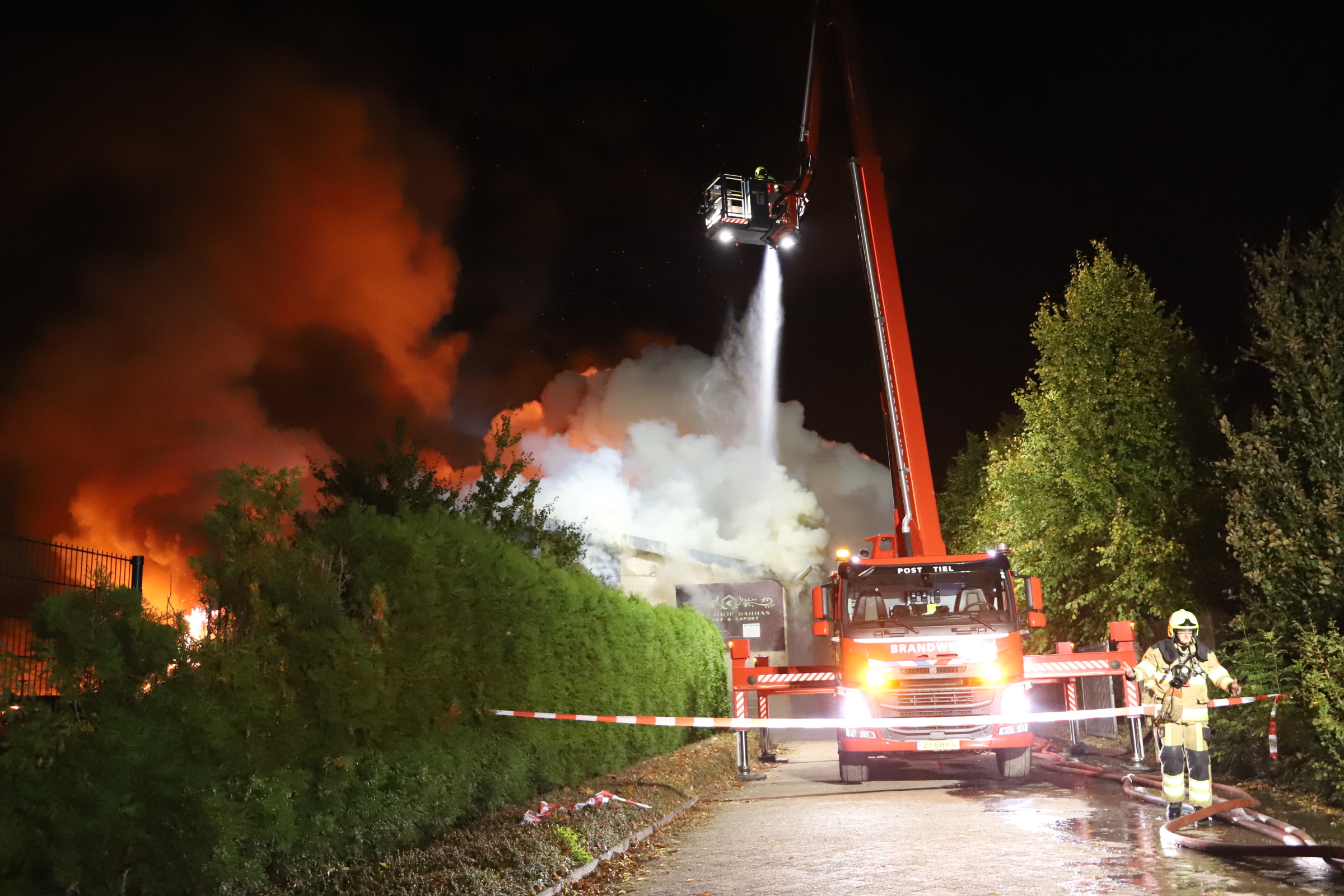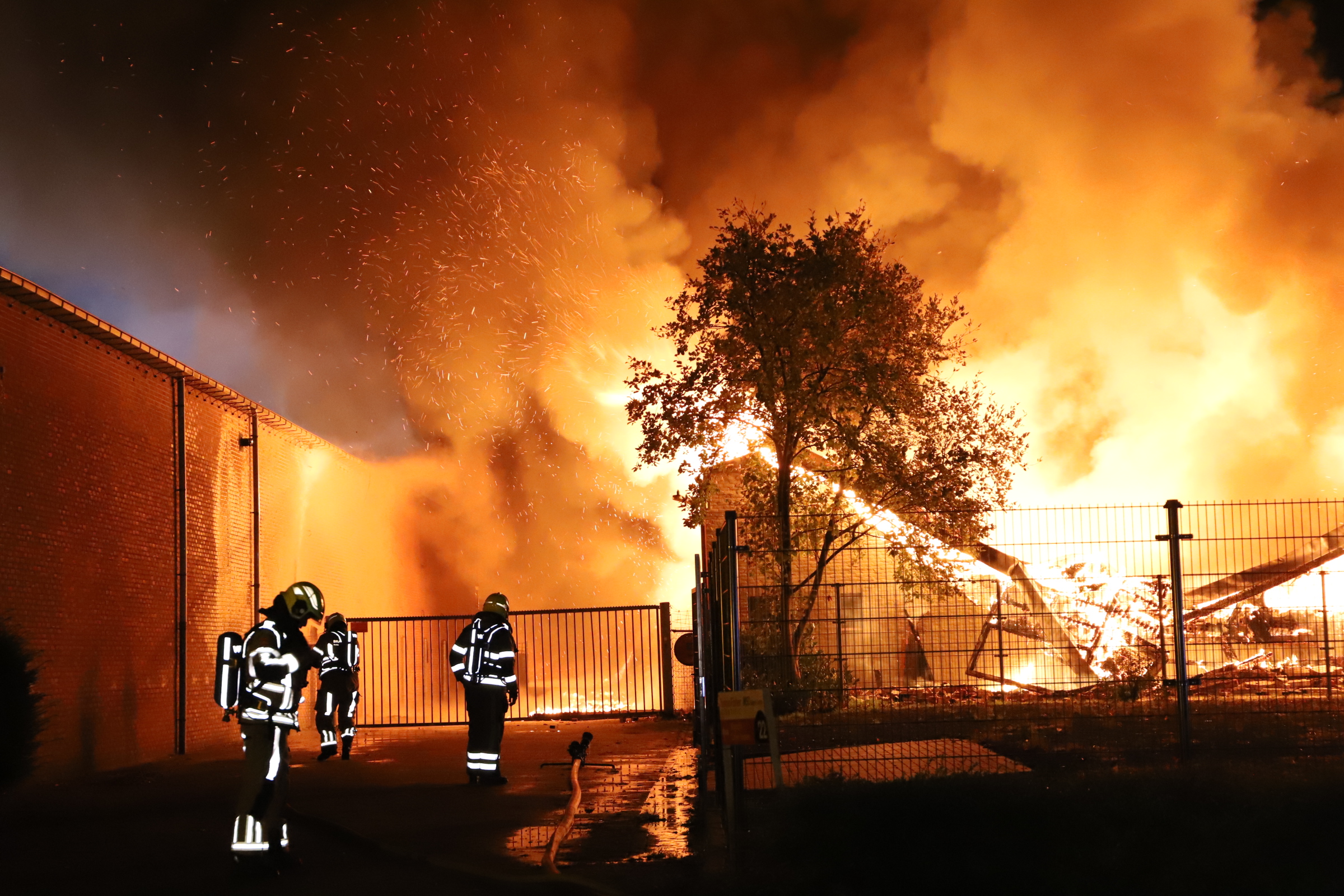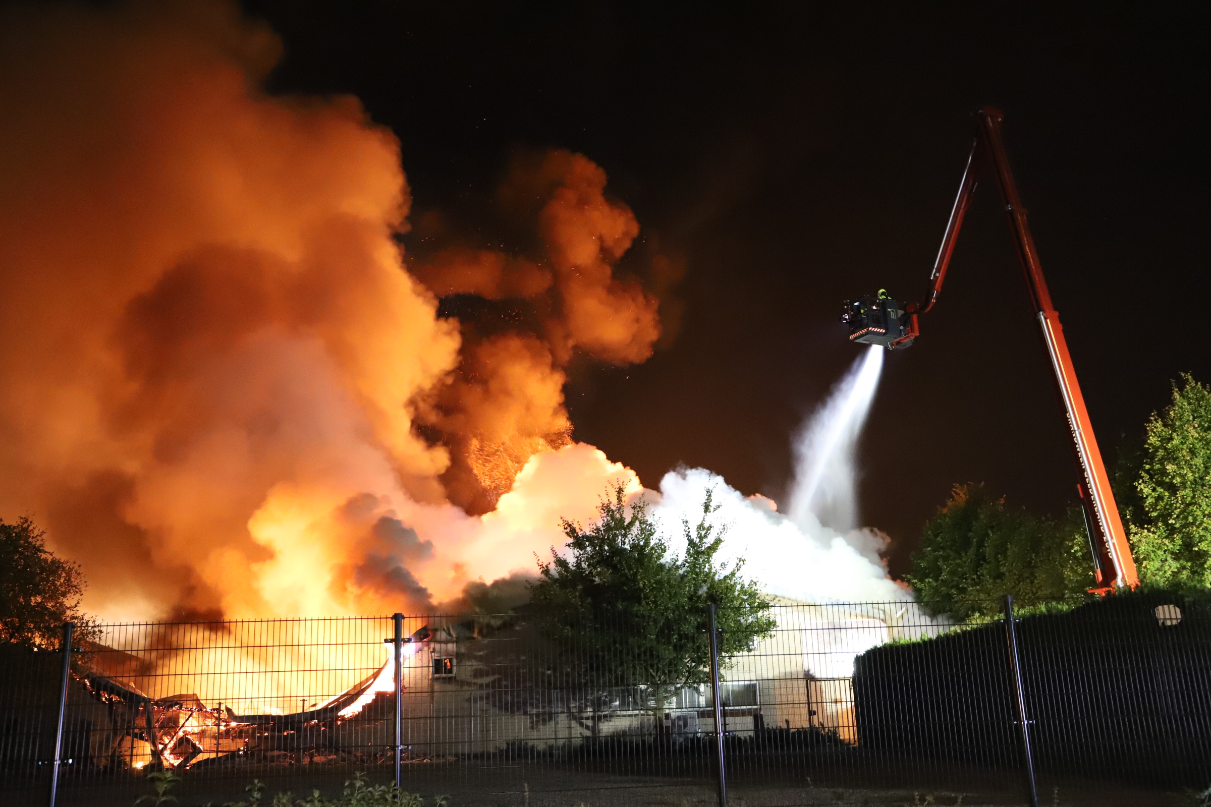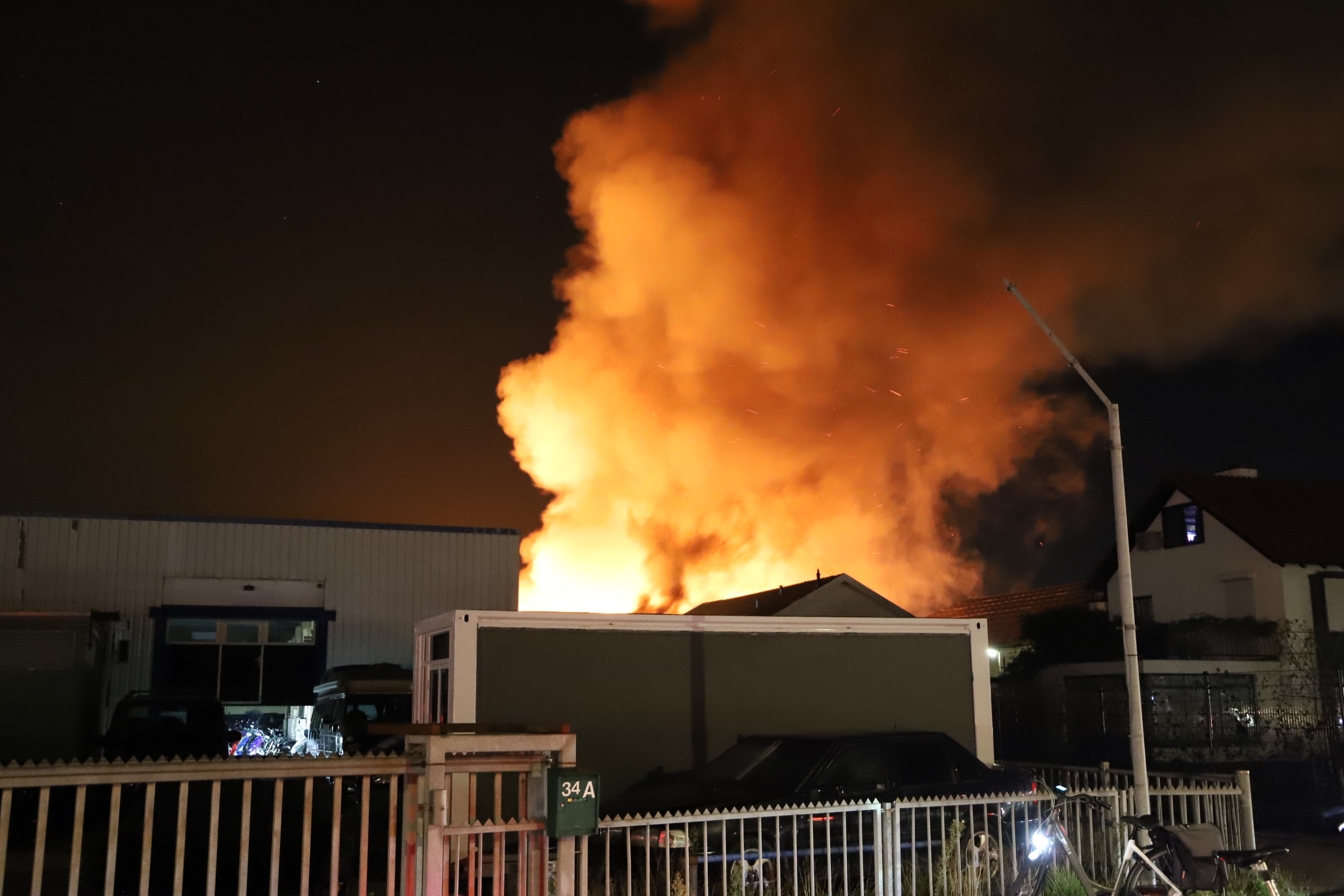 Grote brand uitgebroken in loods met zonnepanelen tussen woningen