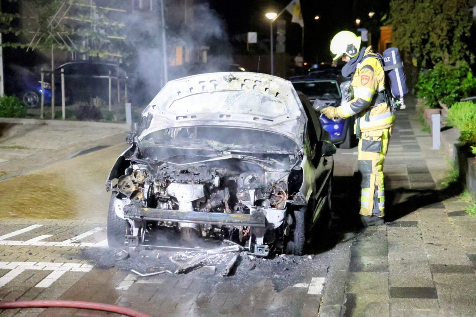 Bij aankomst van de brandweer stond een geparkeerde auto aan de straatkant al volledig in brand. Het voertuig ging volledig verloren.