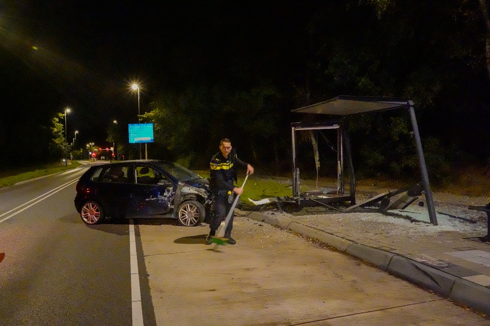 De bestuurder van een auto verloor de macht over het stuur en botste tegen een bushalte aan de overzijde van de weg. De bushalte raakte zwaar beschadigd en ook de auto liep flinke schade op. Het fietspad lag bezaaid met glas, waarna de gemeente ter plaatse kwam om op te ruimen. Het voertuig is later door een berger afgevoerd.