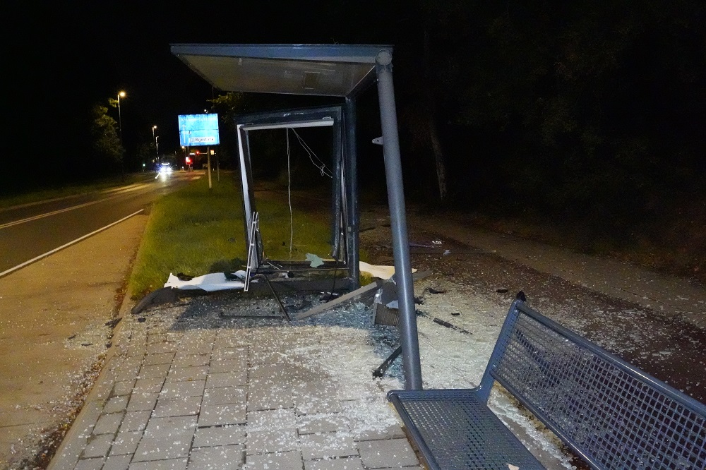 Automobilist raakt van de weg en rijdt bushokje compleet aan gort