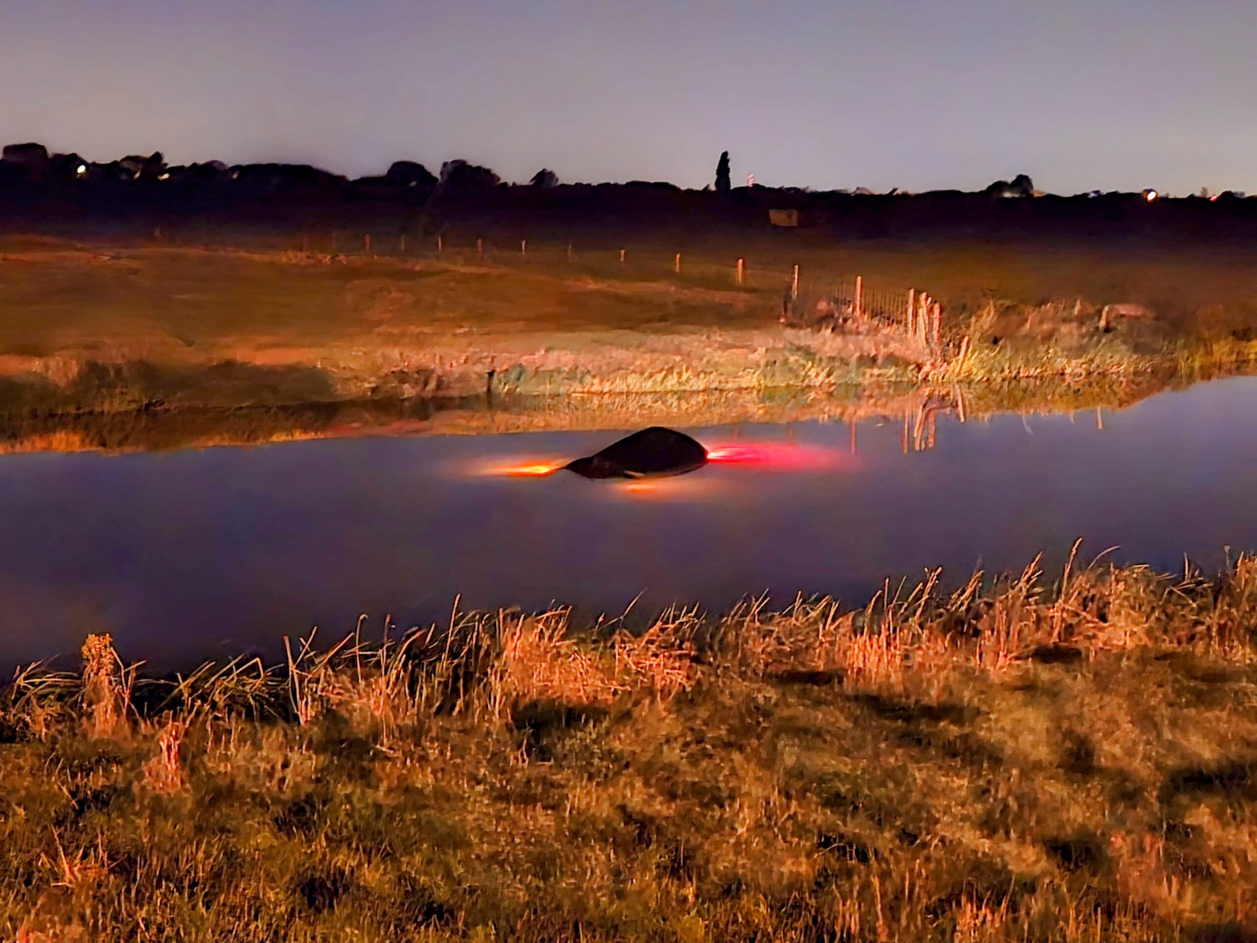 Een bergingsbedrijf is ingeschakeld en probeert het voertuig nog dezelfde nacht uit het water te halen.