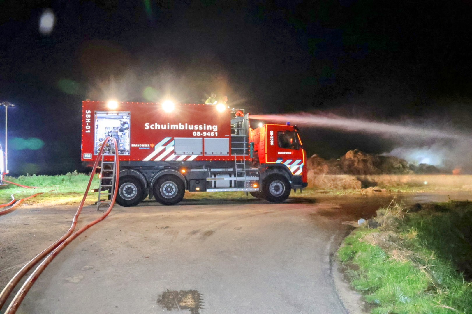 Berg met maaisel vliegt in brand en zorgt voor veel rookontwikkeling