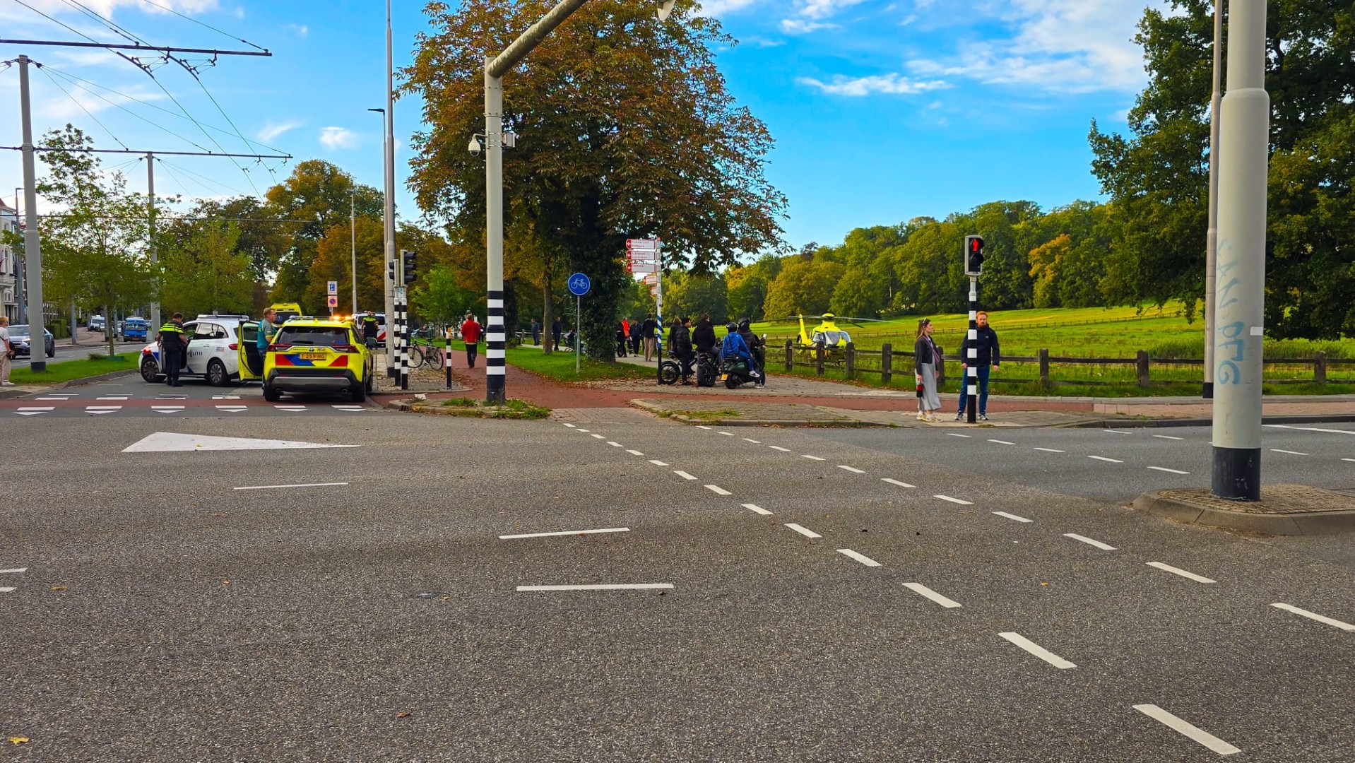 Een traumahelikopter werd opgeroepen en landde in de omgeving, maar is uiteindelijk ingezet voor een andere melding. De oorzaak van de val wordt onderzocht.
