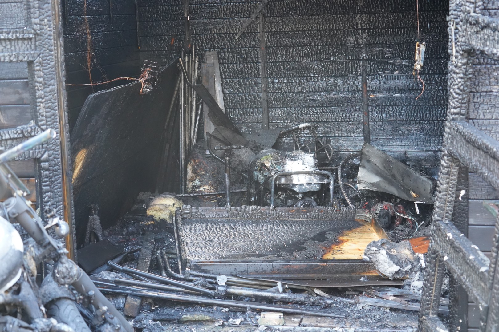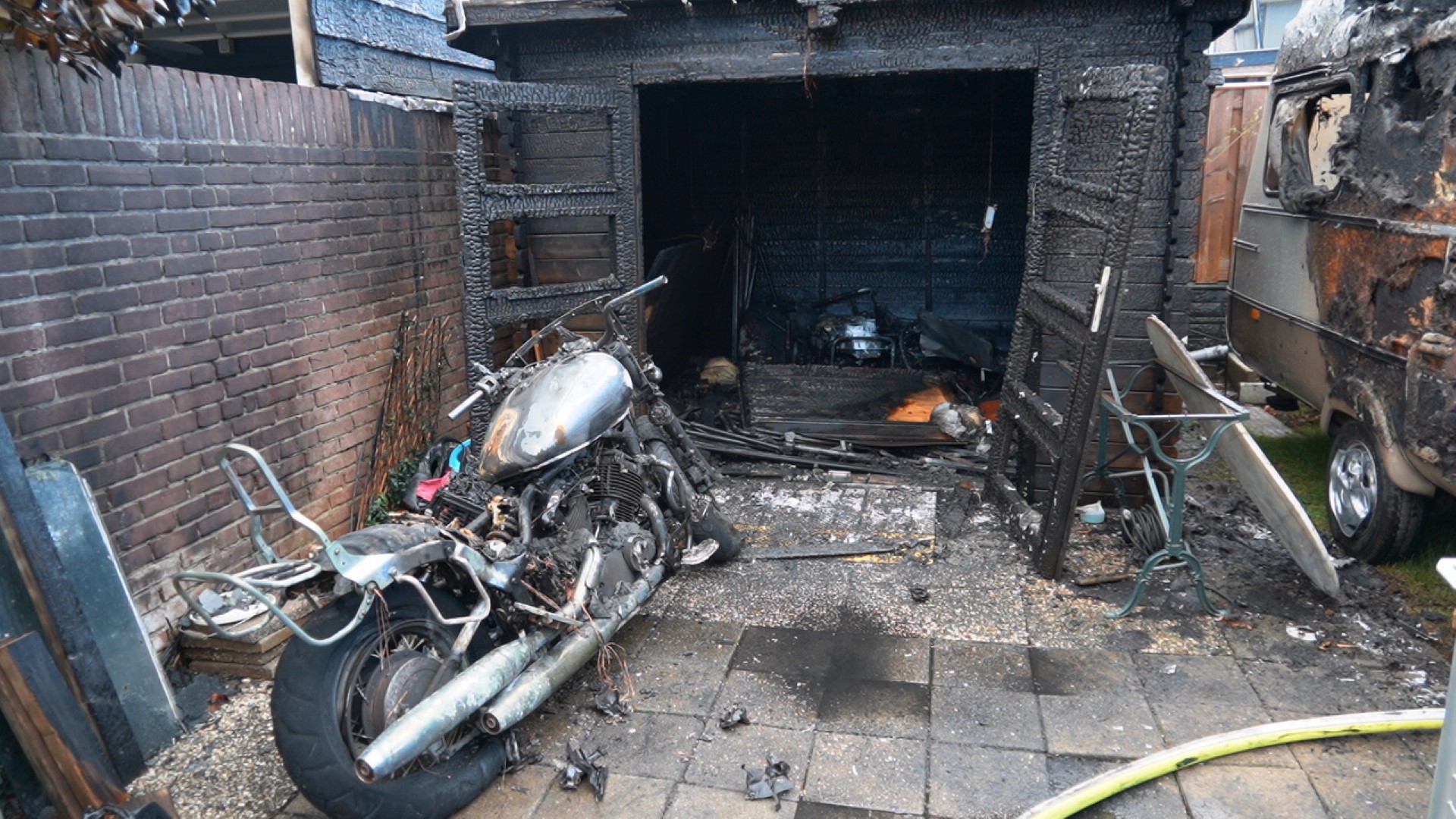 Het vuur greep snel om zich heen en verwoestte de schuur volledig. In het gebouw stonden onder meer twee fietsen en een motor, die door de brand verloren gingen. Ook een nabijstaande caravan brandde volledig uit. Door de hitte liepen een regenpijp, twee kliko’s en een aangrenzende schuur aanzienlijke schade op.