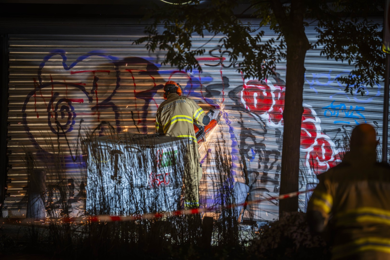 De brandweer zaagde een doorgang in het rolluik zodat het pand kon worden doorzocht. Daarbij werd uitgesloten dat er nog andere verdachten binnen waren. De omgeving blijft de aankomende uren afgesloten voor sporenonderzoek. De aangehouden mannen zijn overgebracht naar het cellencomplex.