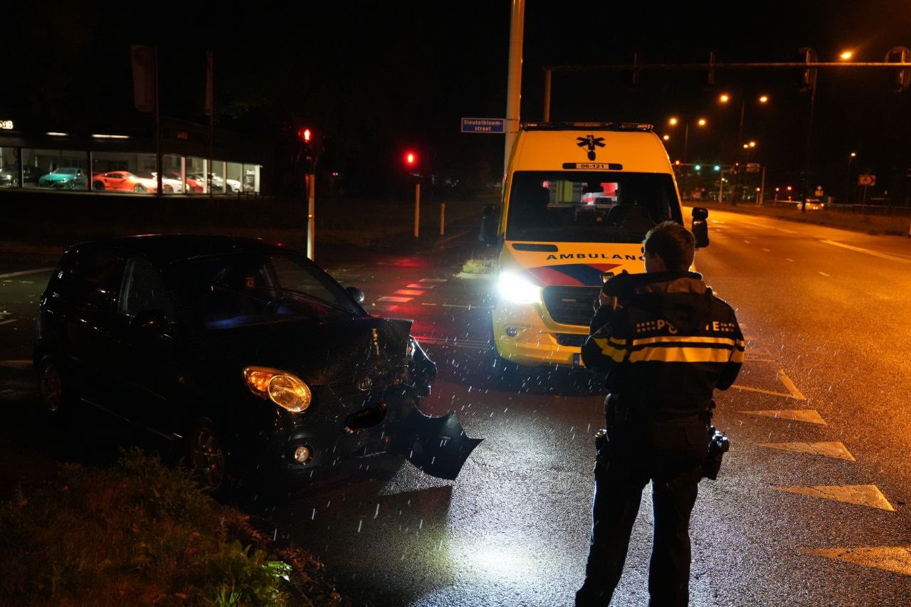 Auto botst tegen verkeerslicht, bestuurder lichtgewond