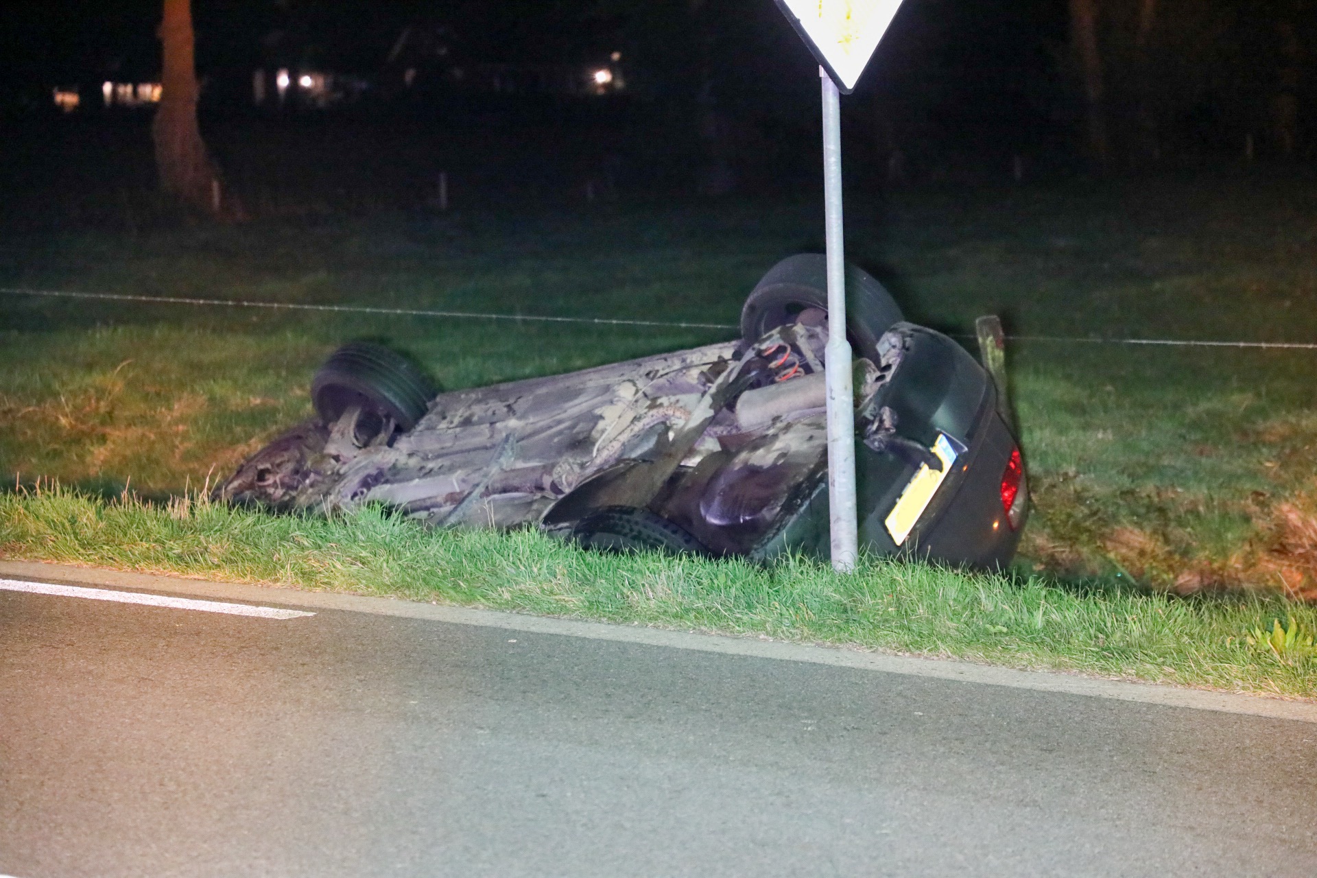 LUNTEREN – Woensdagavond is een automobilist met zijn voertuig op de kop in een sloot beland langs de Lage Valkseweg in Lunteren. Het eenzijdige ongeval werd rond 22.55 uur gemeld door voorbijgangers.