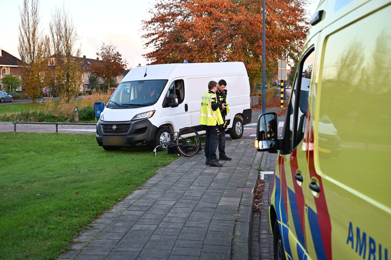 De vader van het meisje heeft haar opgehaald. De fiets is meegenomen in een bestelwagen. De auto kon ondanks de schade zijn weg vervolgen.
