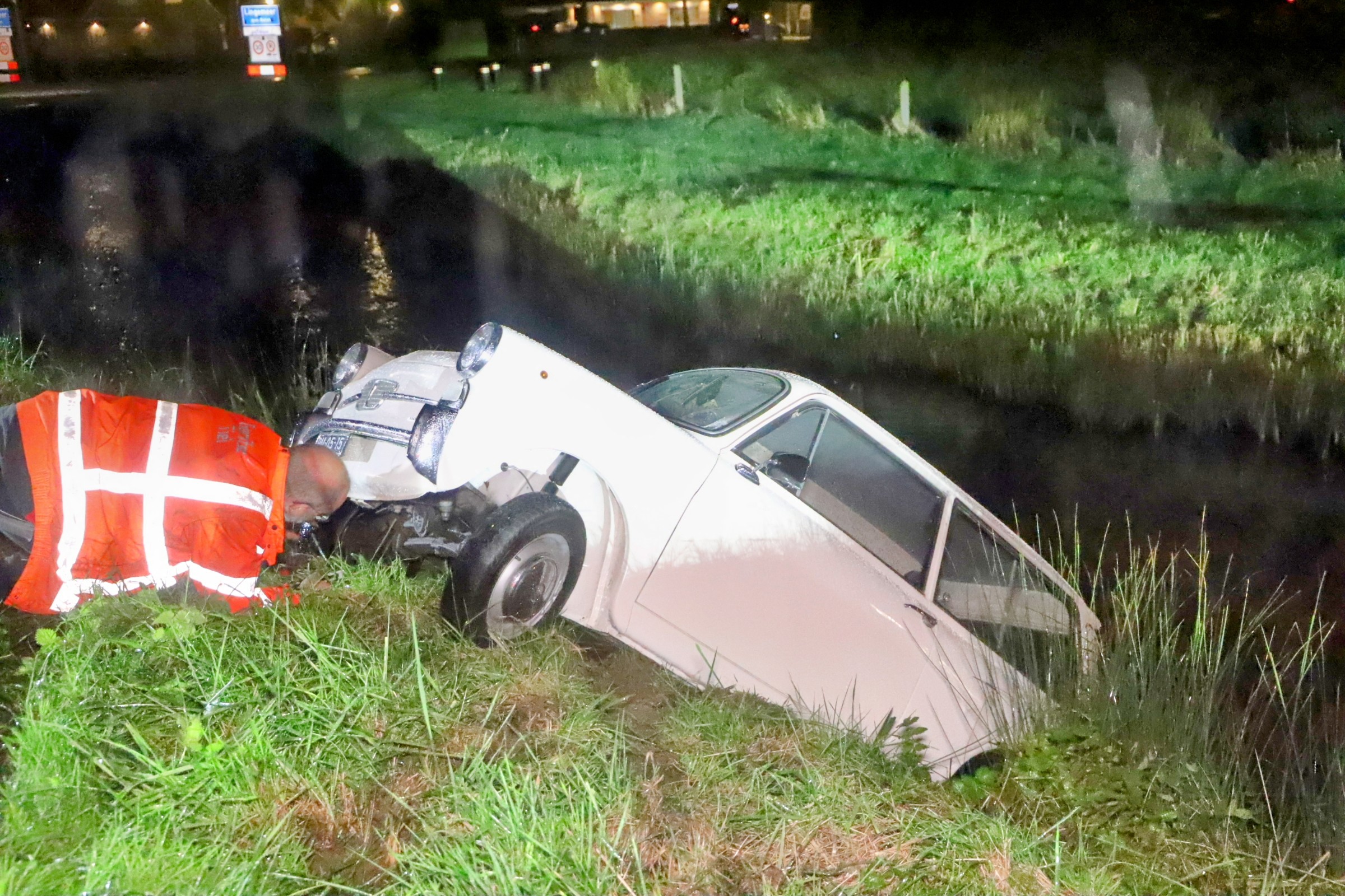 Oldtimer uit 1969 raakt van de weg en belandt in sloot