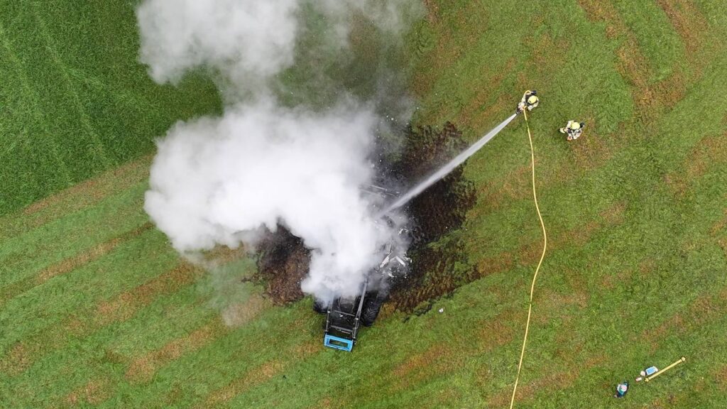 OOIJ – Maandagmiddag is de brandweer uitgerukt naar de Leuthsestraat in Ooij vanwege een tractorbrand. Het voertuig vloog in brand tijdens maaiwerkzaamheden op een perceel.